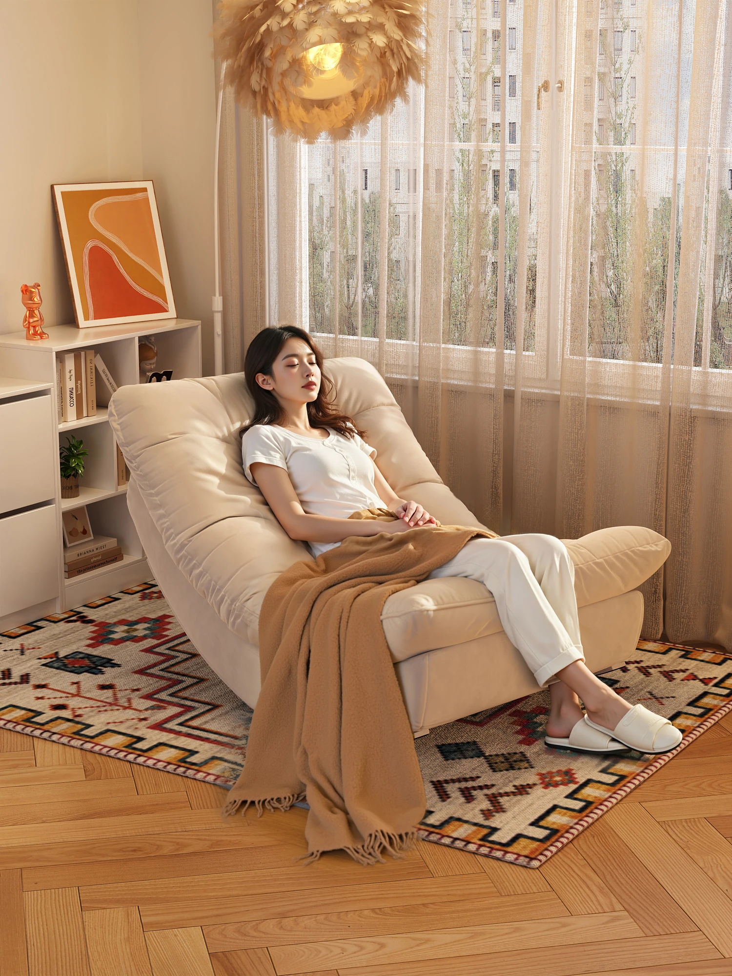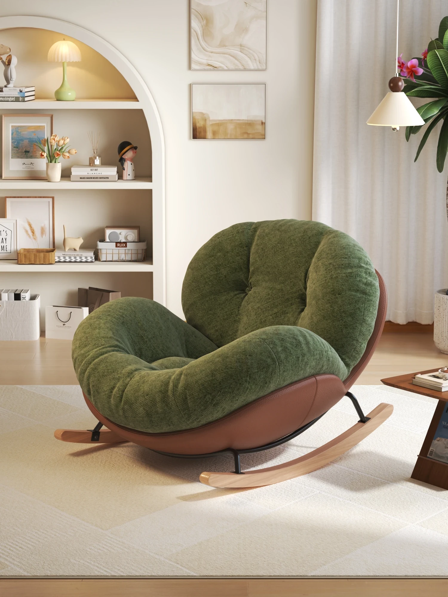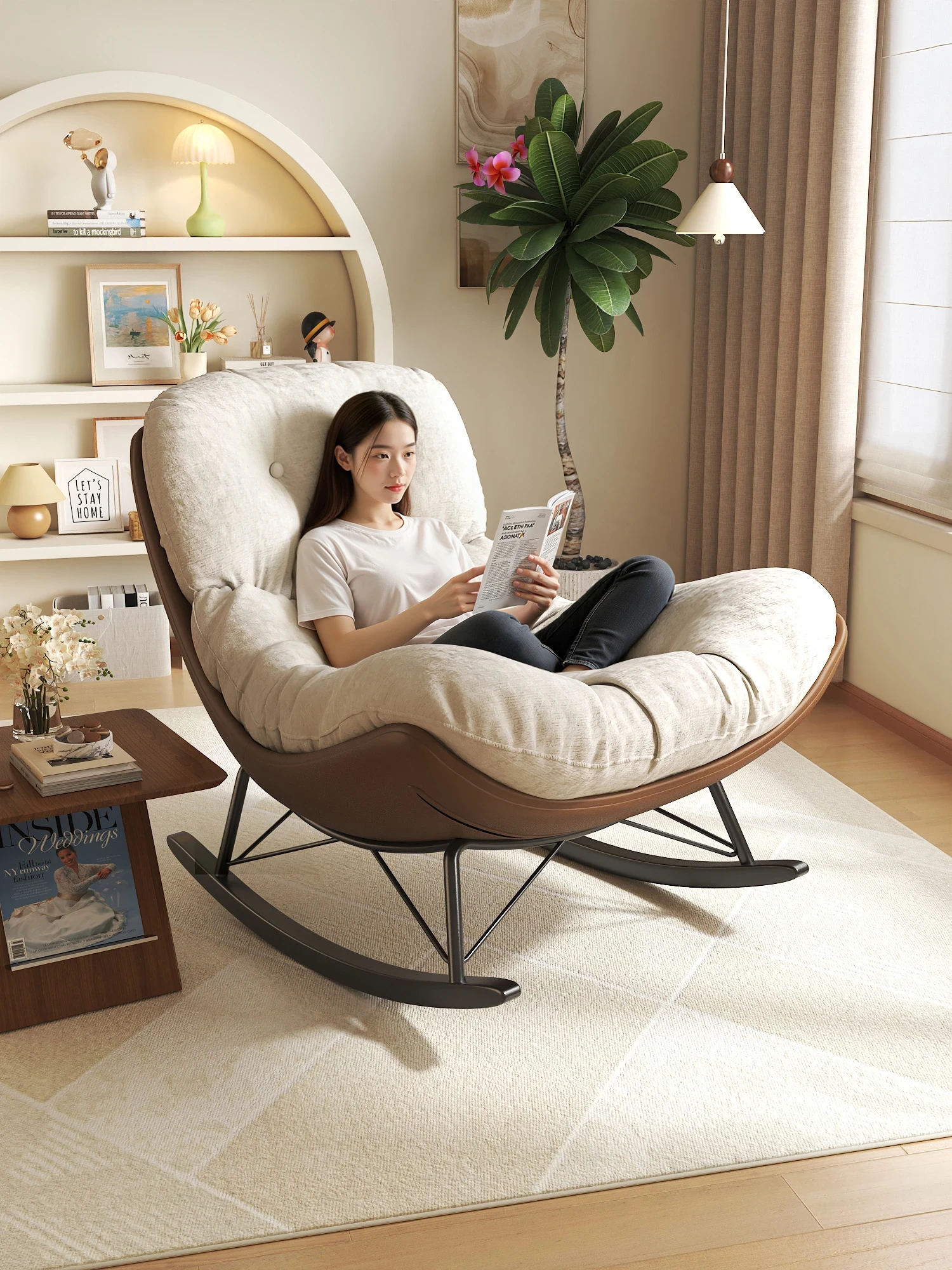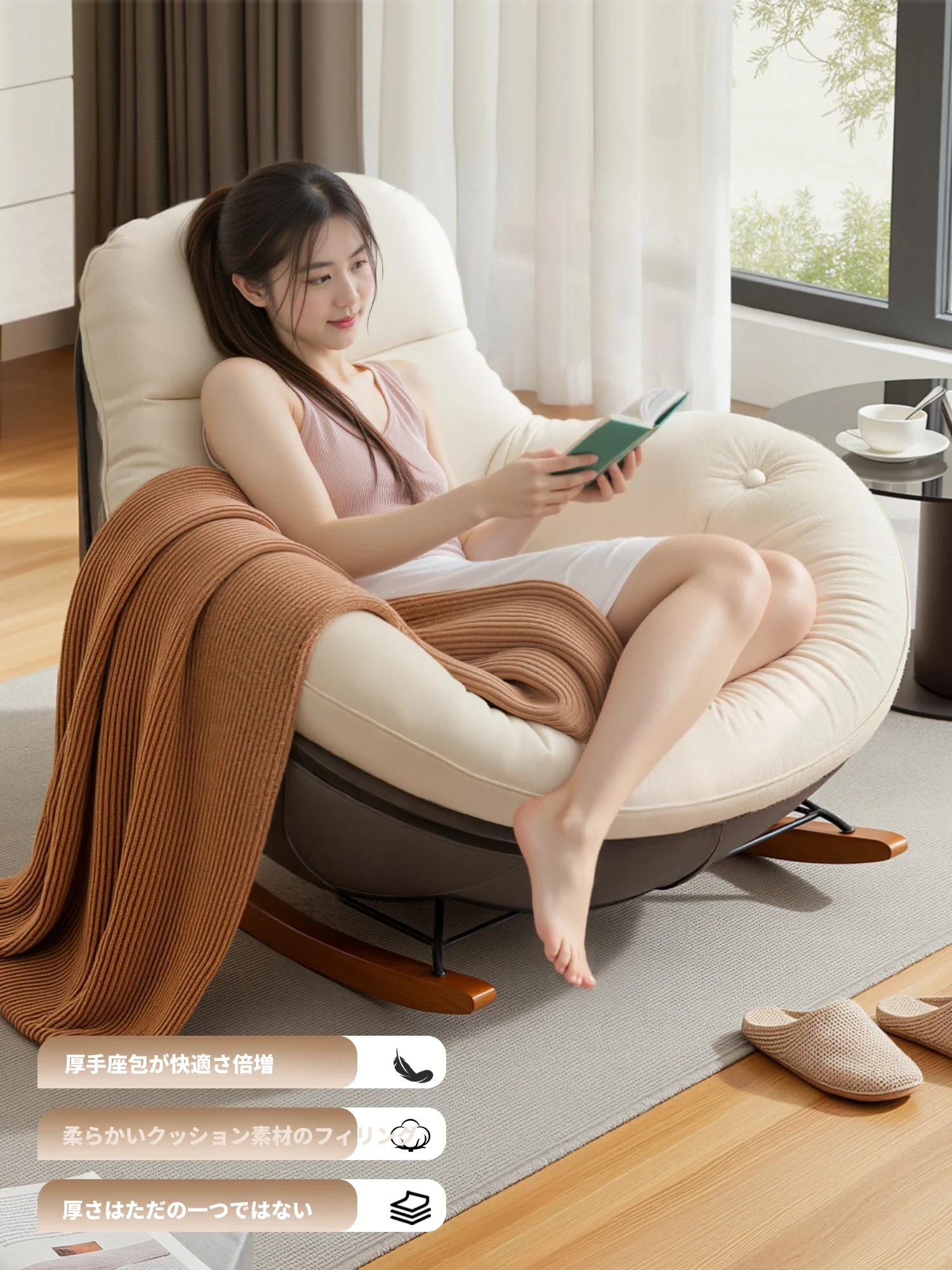 リラックスできる一人用ロッキングチェア!自宅やバルコニーに最適な懶人ソファ。くつろぎのひとときを提供し、寝転んでお休みいただけます。リビングでも大活躍!