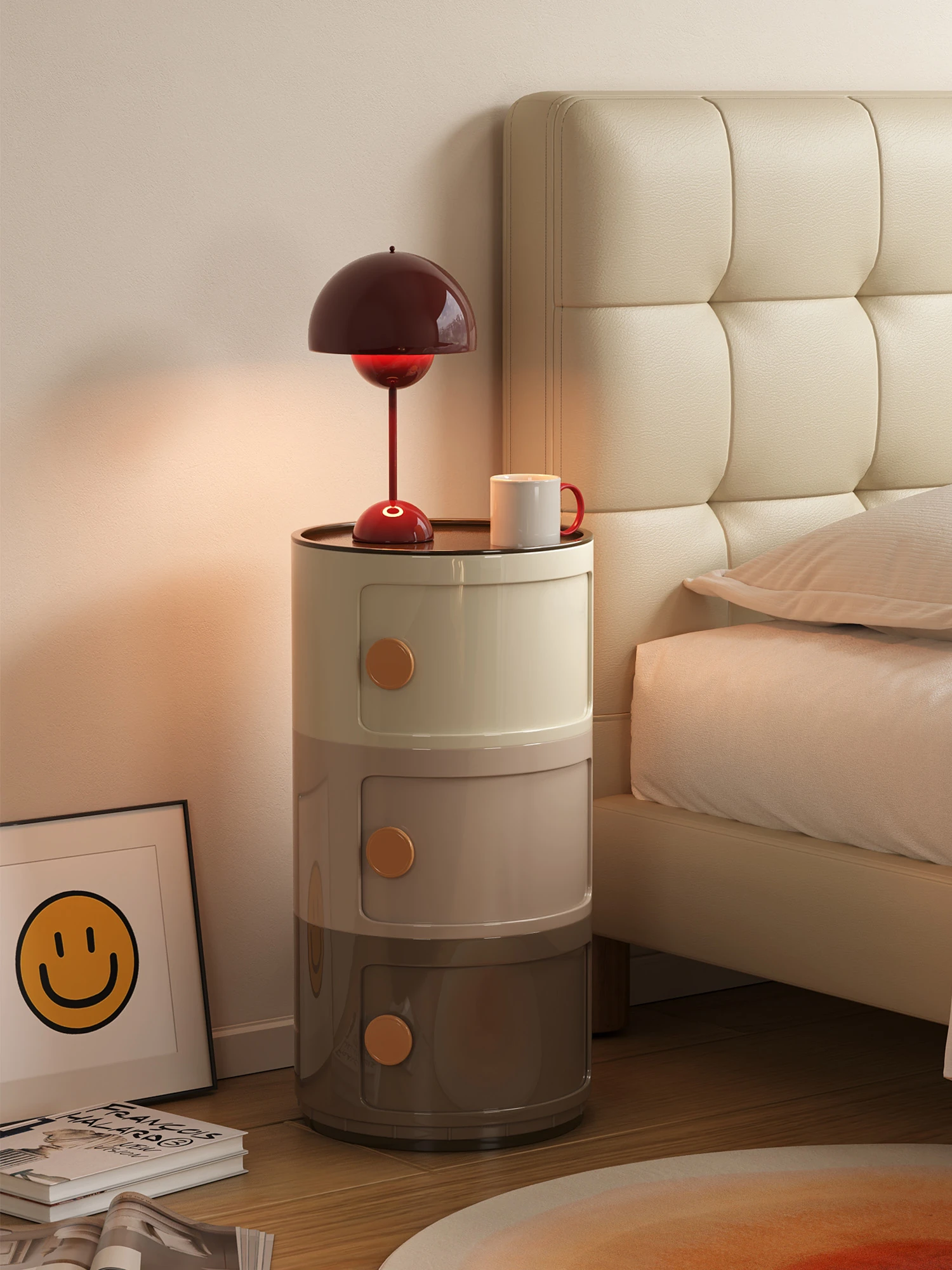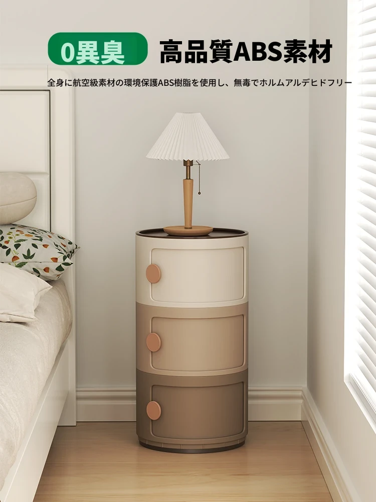 おしゃれで可愛い!モダンミニマリストの円形プラスチック子供用収納キャビネット - クリーム風のナイトスタンド便利な置物ラック。お部屋を彩る素敵な収納アイテムです!
