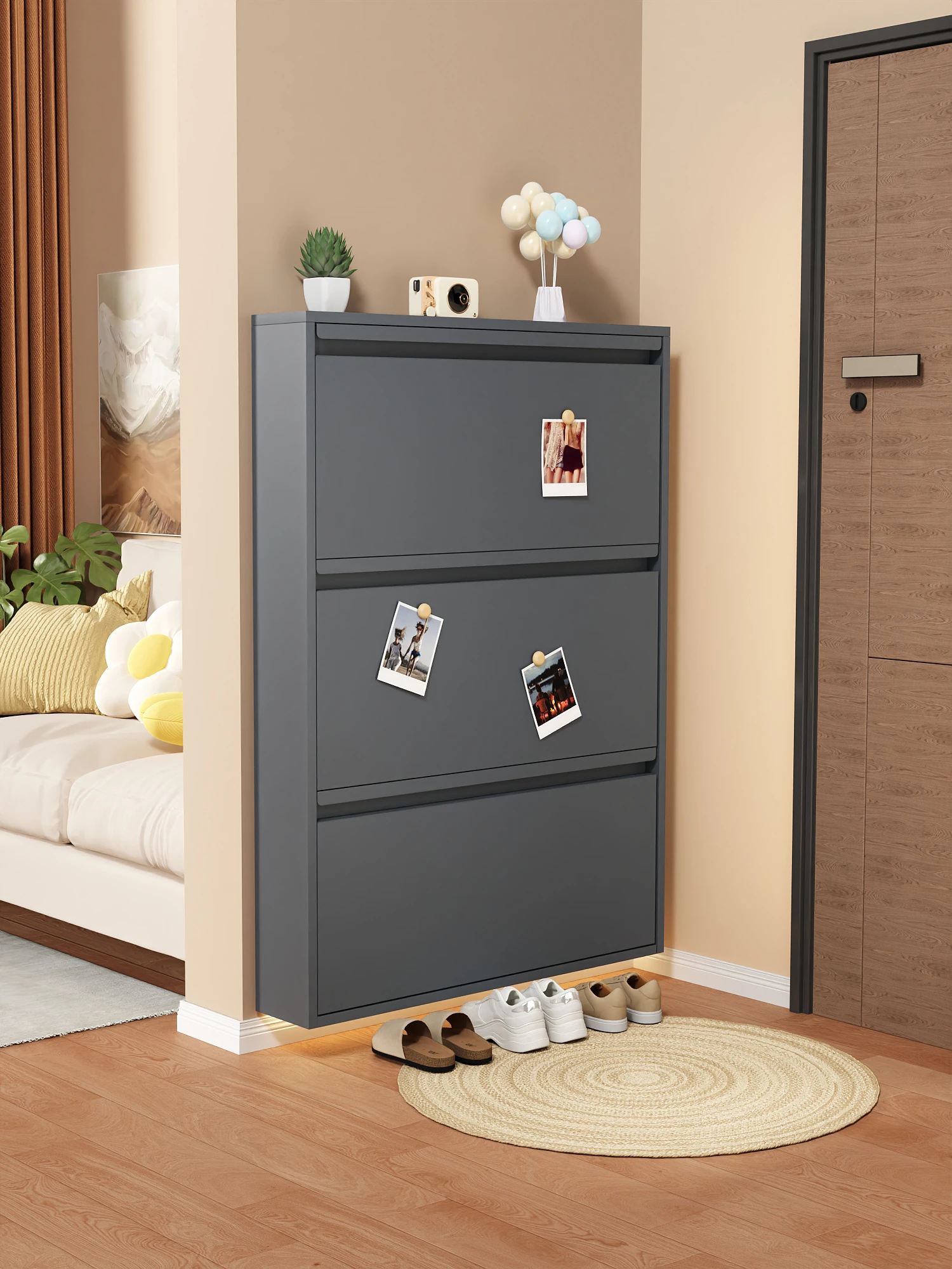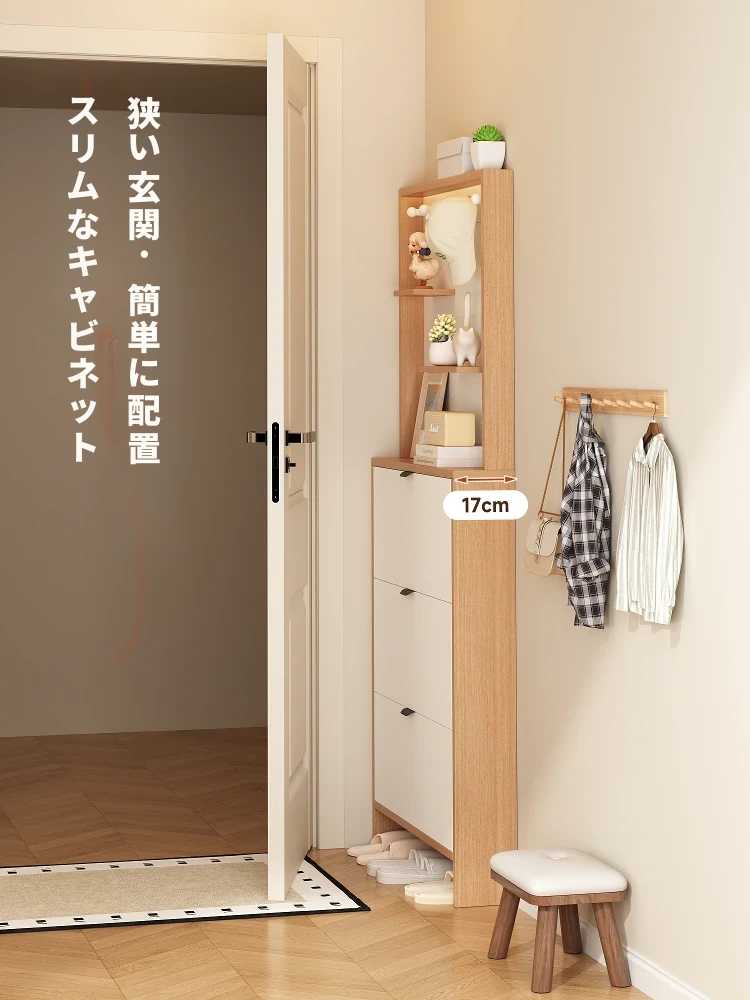 超薄デザインの翻斗シューズキャビネット!家庭用・狭い玄関にも最適な実木製収納キャビネット。壁にぴったりフィットする2025年新モデルで、スッキリとした空間を実現します!