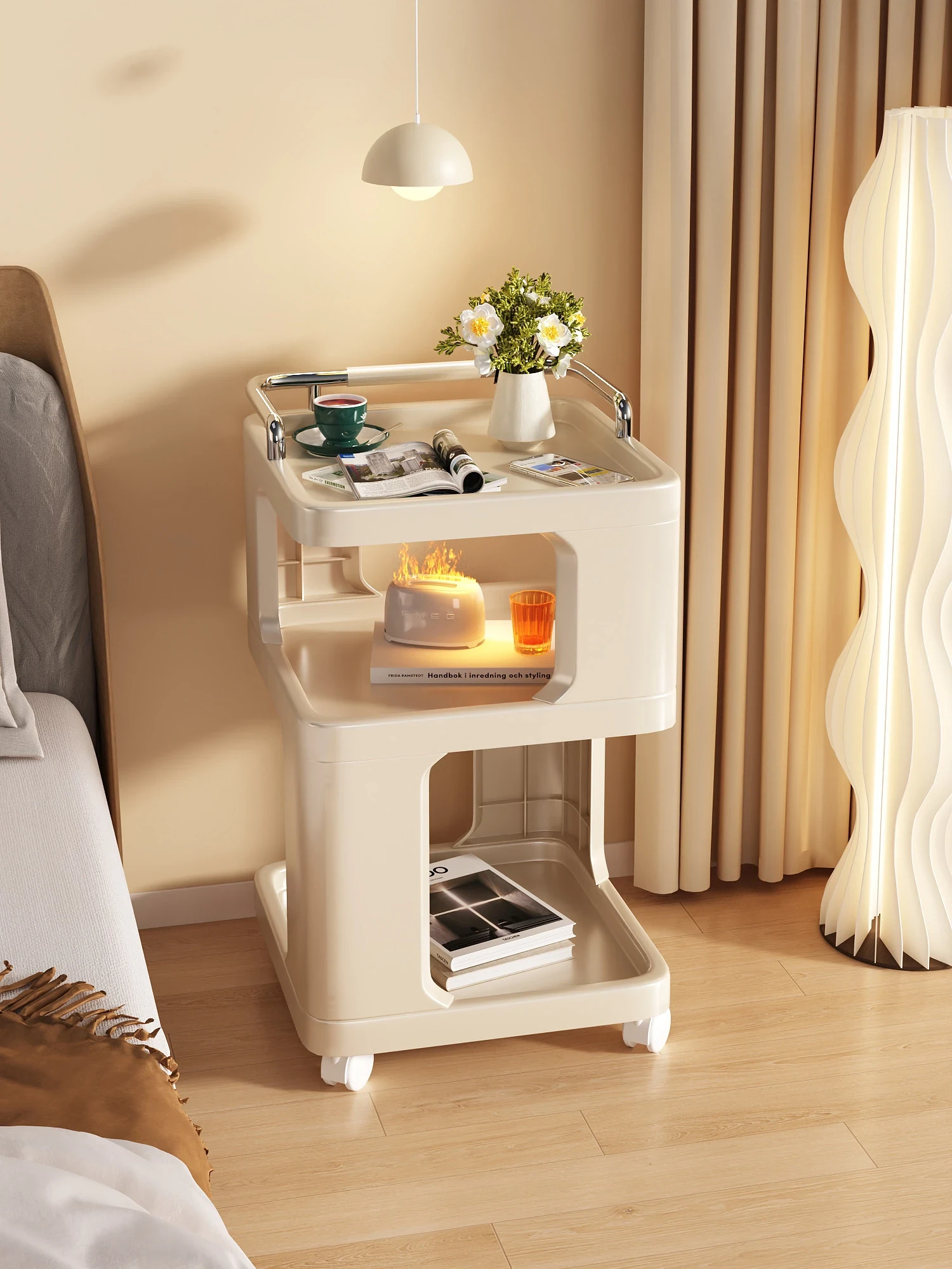移動式ベッドサイドテーブル!おしゃれなクリーム風デザインの小型収納ラック。寝室に最適なサイドテーブルとして、便利さとスタイルを兼ね備えた必需品です!