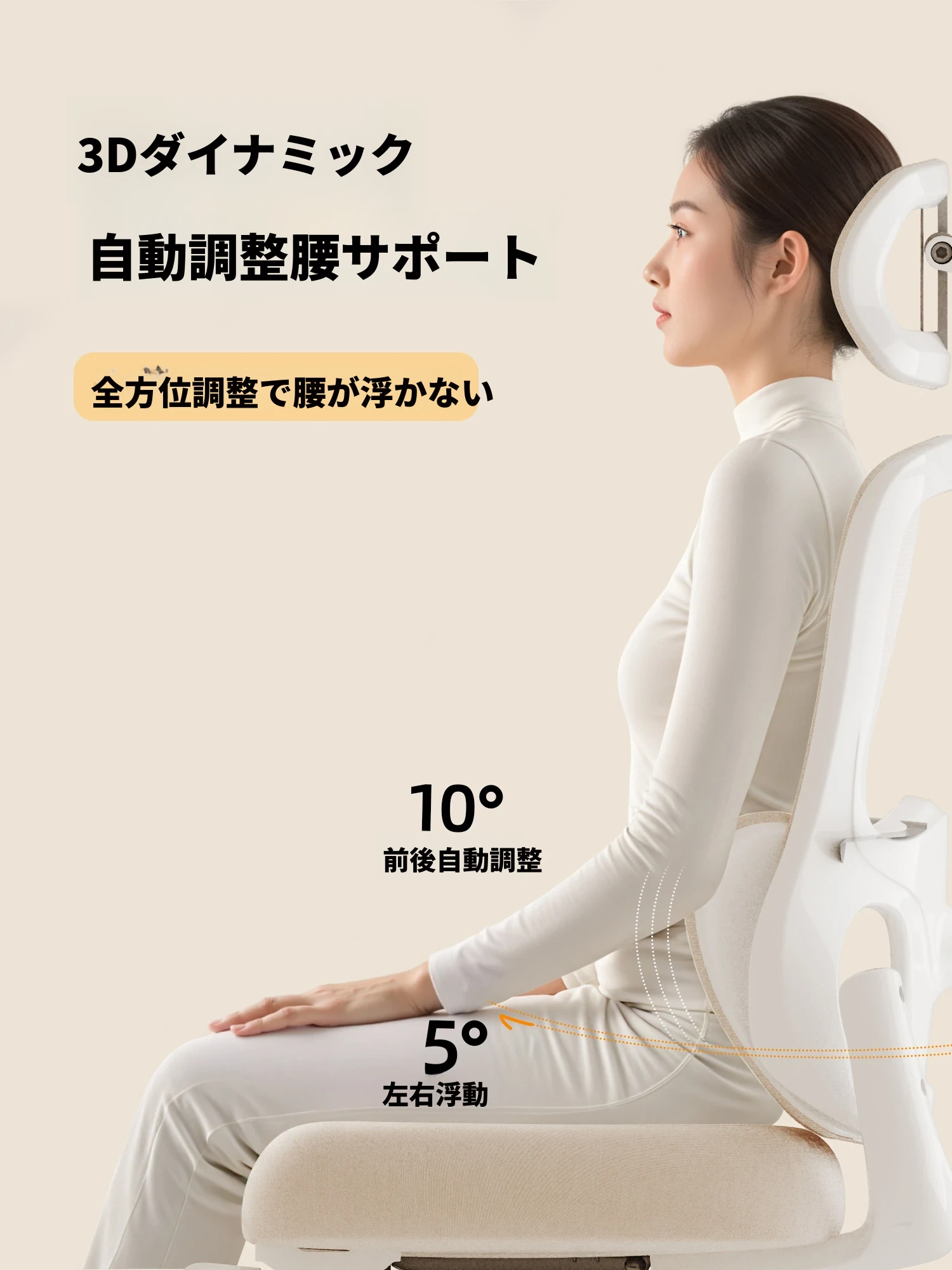 長時間座っても疲れない!快適でリラックスできるオフィス用エルゴノミクスチェア。調整可能な腰サポートとリクライニング機能付きで、最高の座り心地を実現!