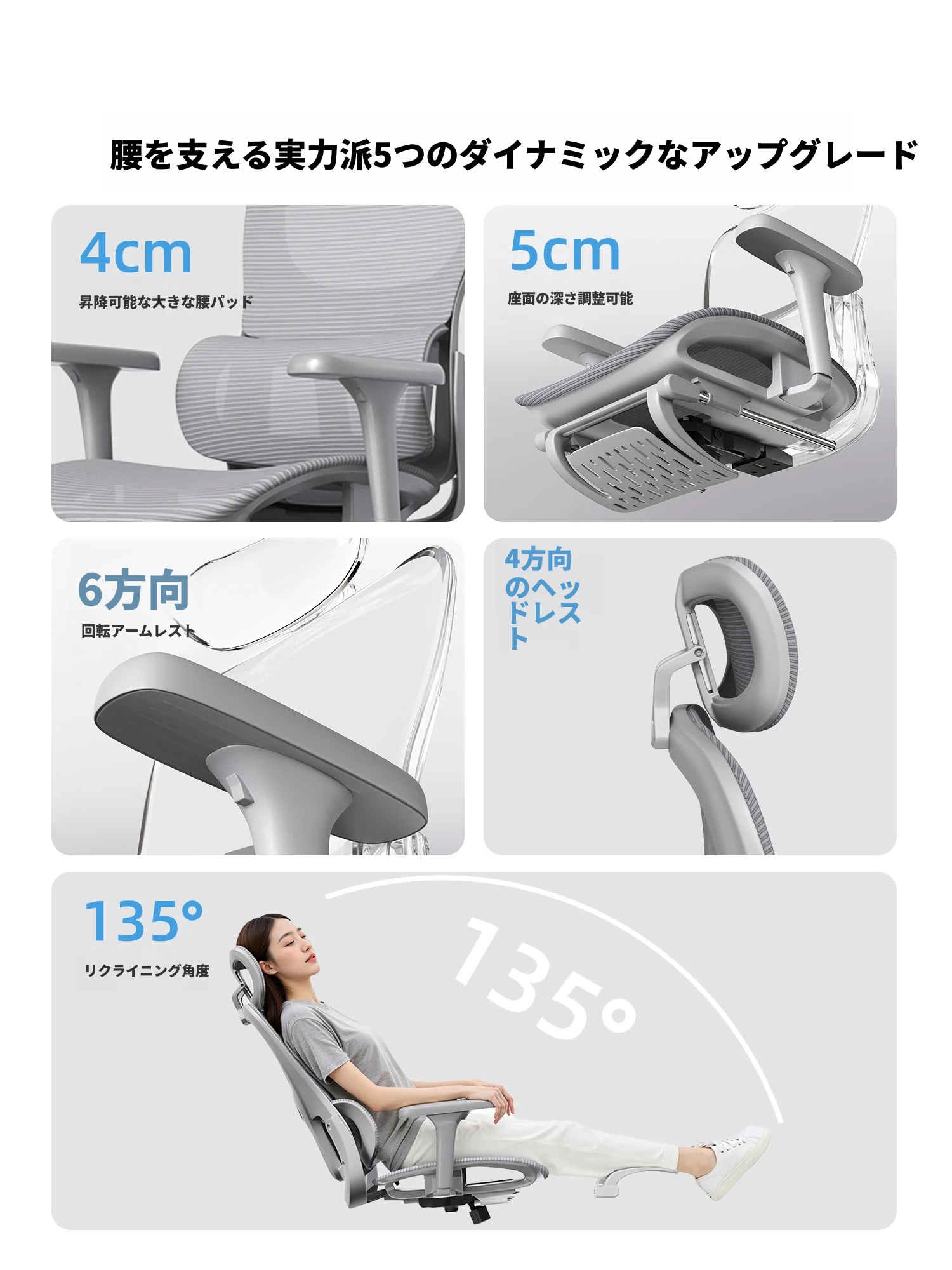 エルゴノミクスチェア|快適なリクライニング機能付き!女性に優しい腰サポート|夏にぴったりの通気性デザイン|自宅でのリラックスやお昼寝、ゲーミングに最適!