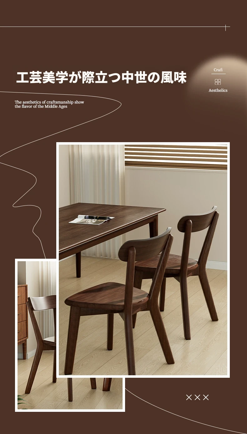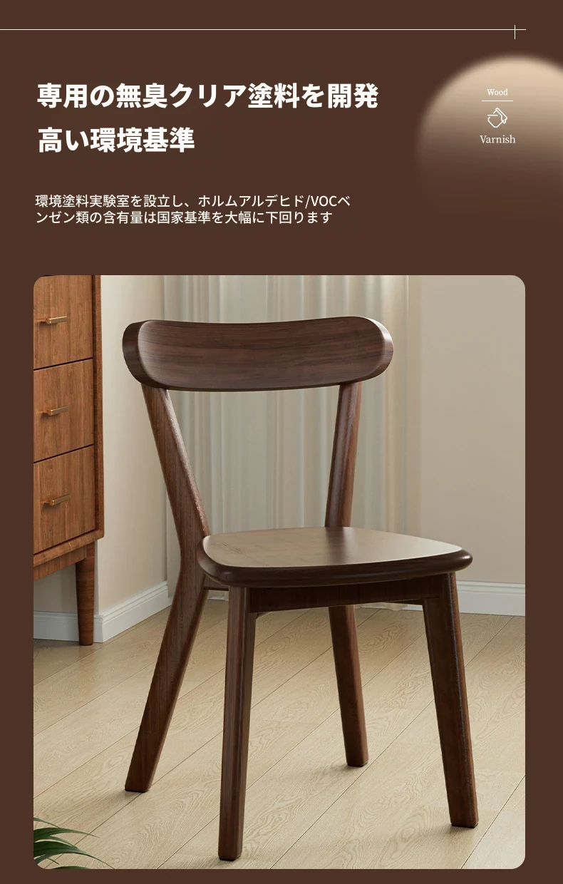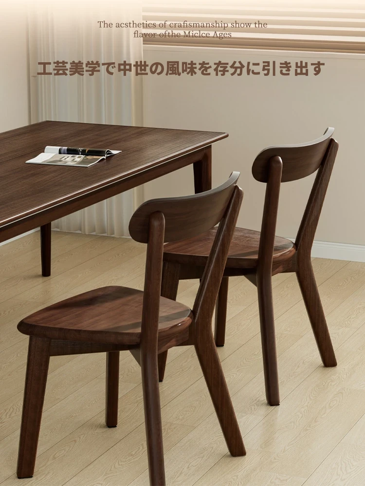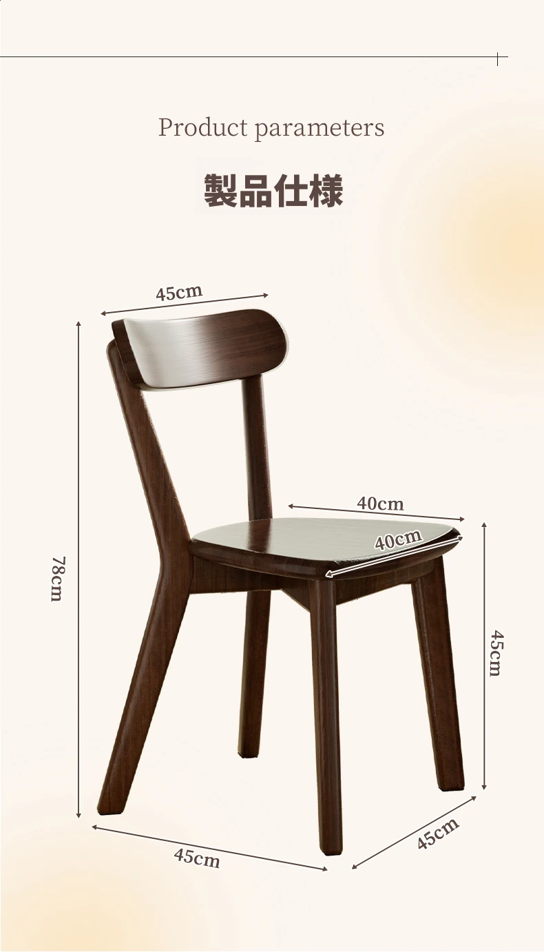 高級感あふれる軽奢スタイルのダイニングチェア!小型住宅にも最適な厚手の無垢材製、シンプルでモダンなデザインの食卓用椅子。食事を楽しむための理想的なアイテムです!