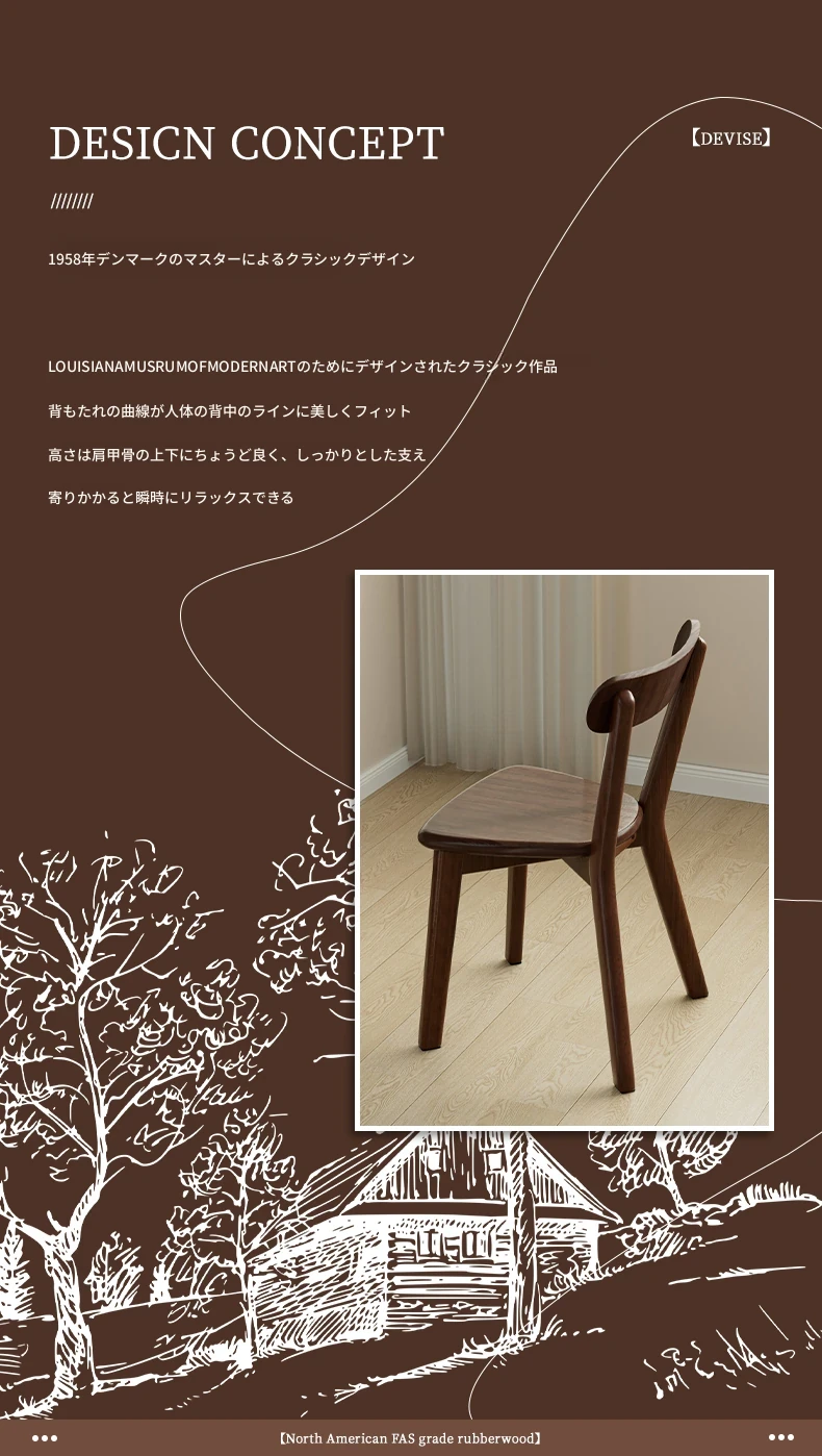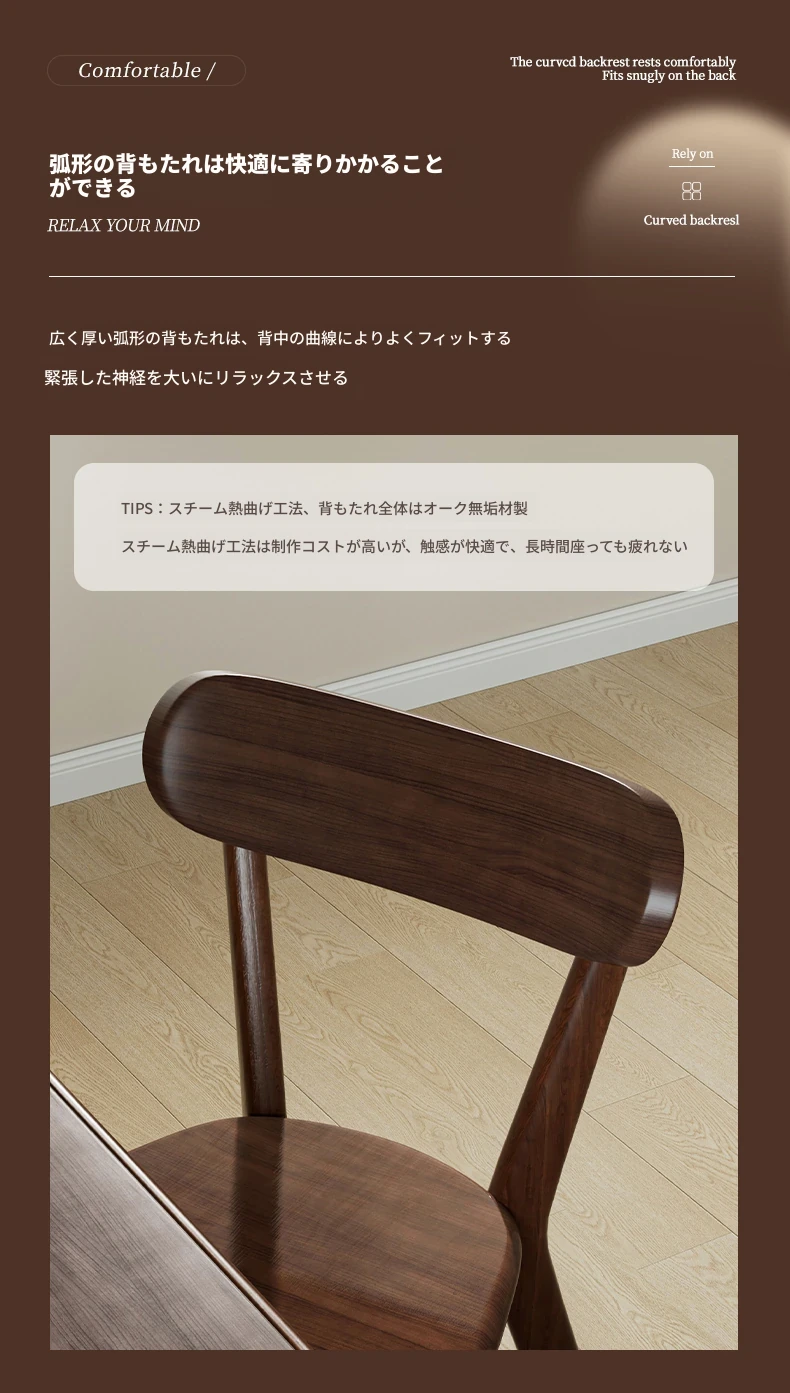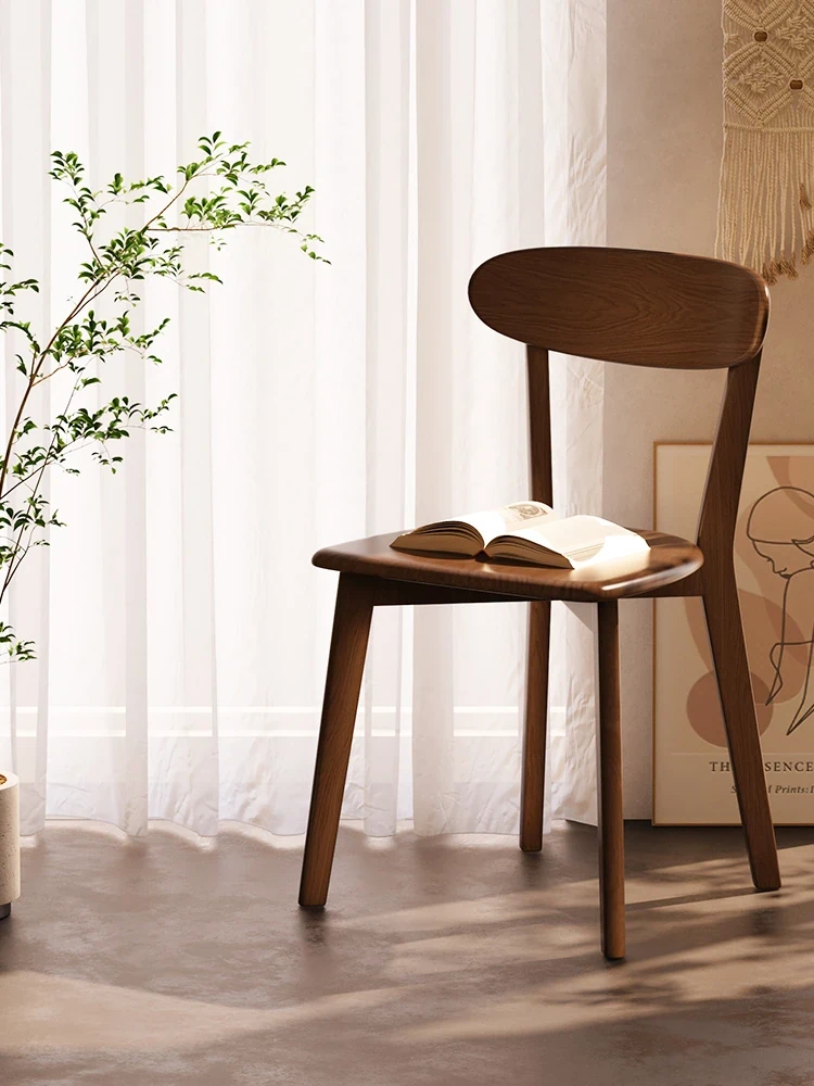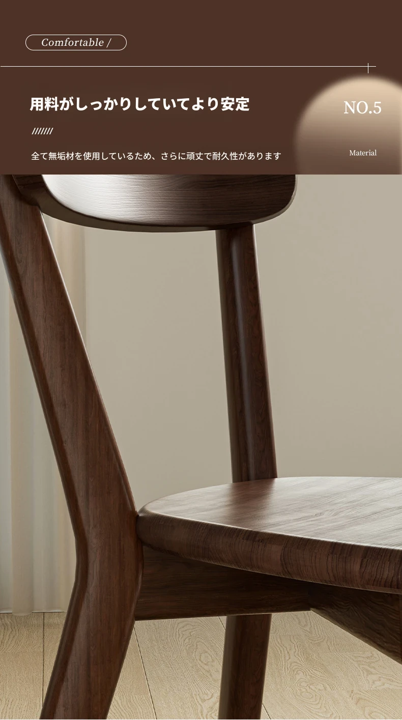 高級感あふれる軽奢スタイルのダイニングチェア!小型住宅にも最適な厚手の無垢材製、シンプルでモダンなデザインの食卓用椅子。食事を楽しむための理想的なアイテムです!
