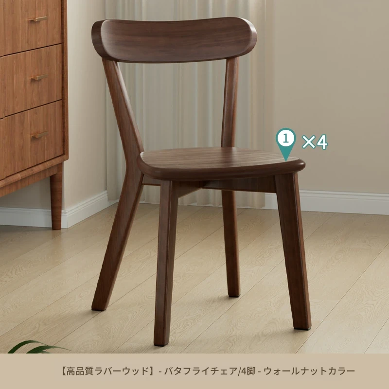 ウォールナット色★4脚ルイーズチェア★【輸出品質FAS級全無垢材】
