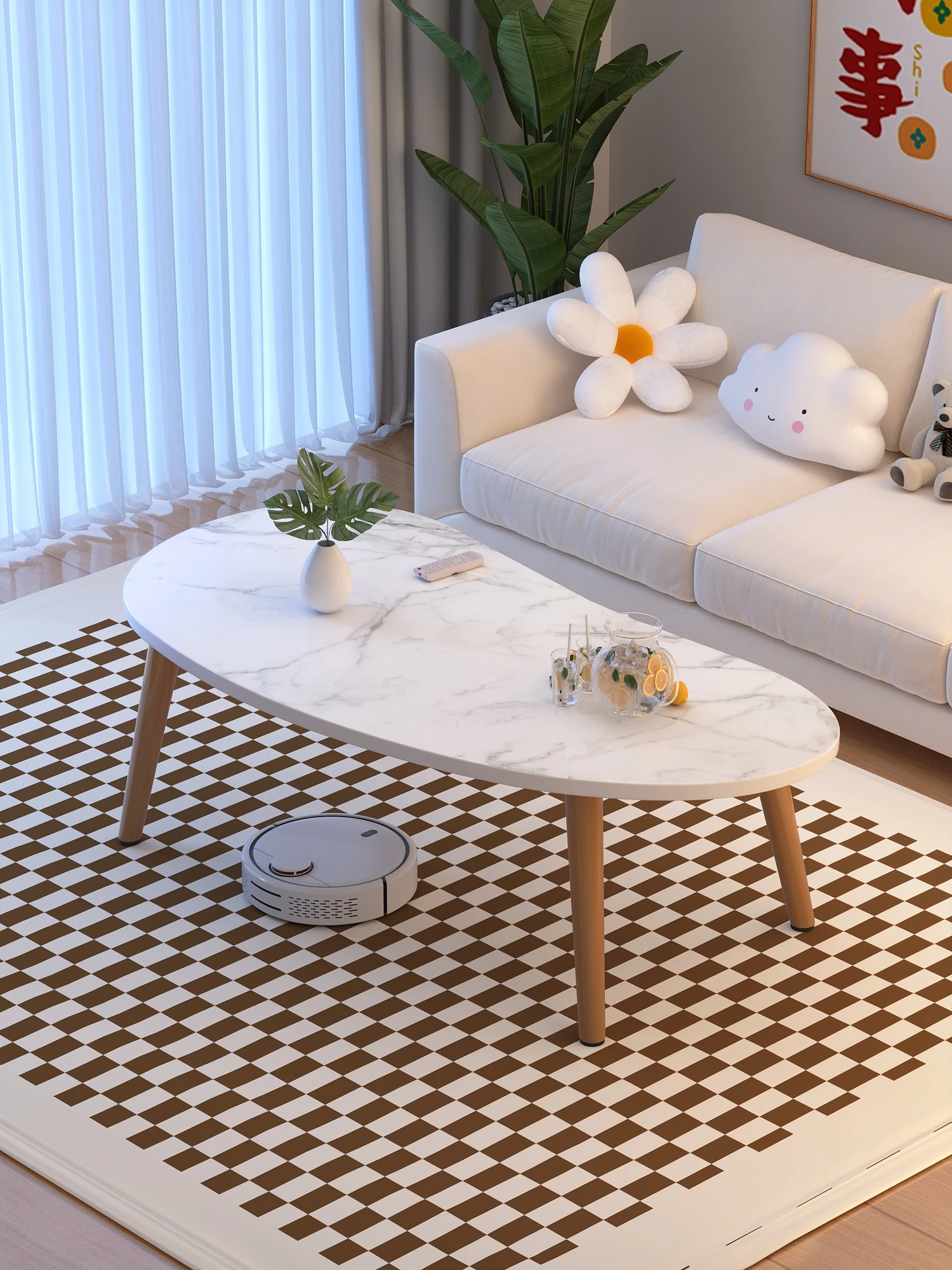 リビングにぴったり!小型住宅向けのシンプルでモダンな無垢材のコーヒーテーブル。クリーム色の優しいデザインで、寝室や座卓としても最適。おしゃれなネット人気のテーブルで、あなたの空間を華やかに演出します!