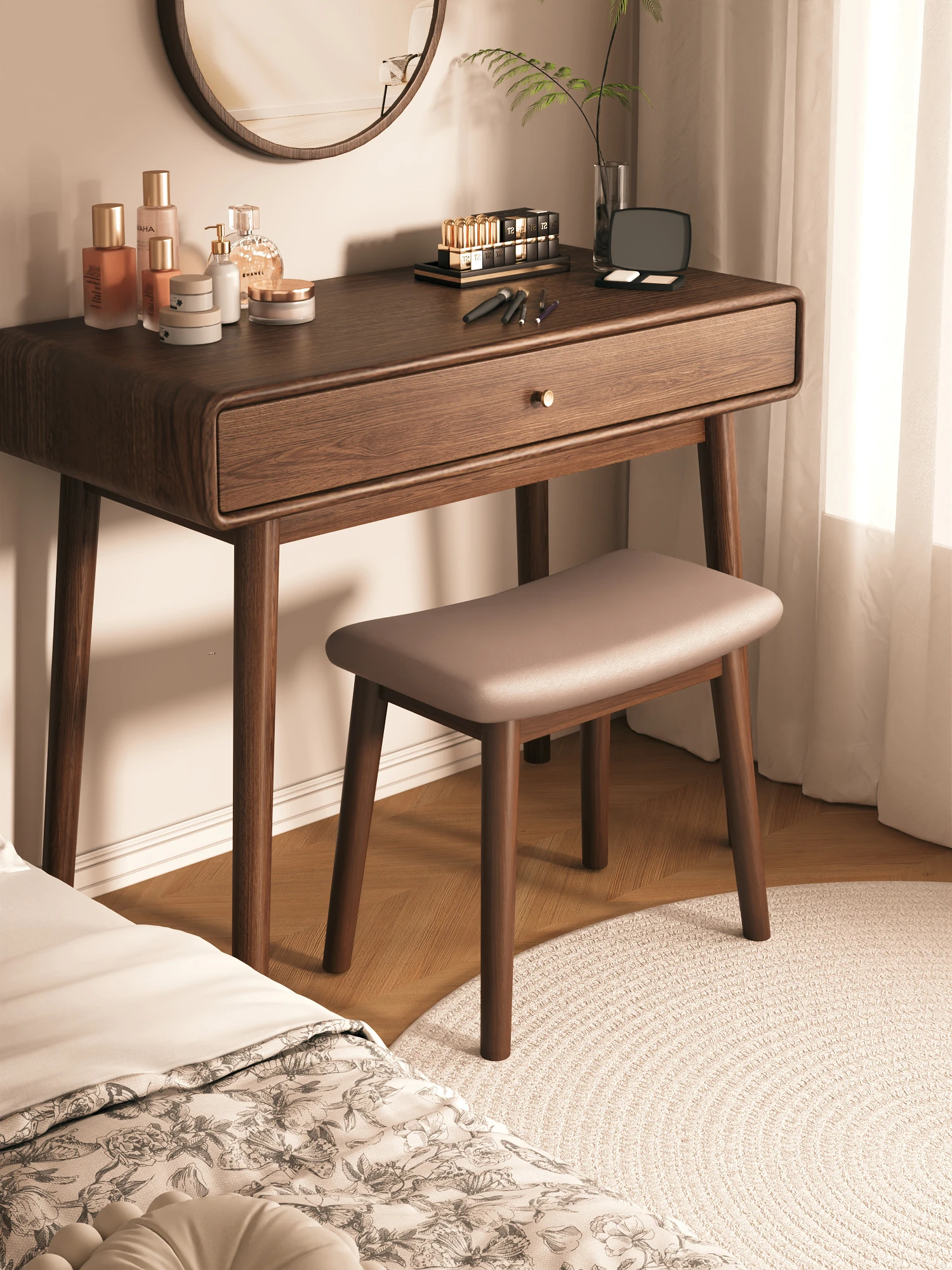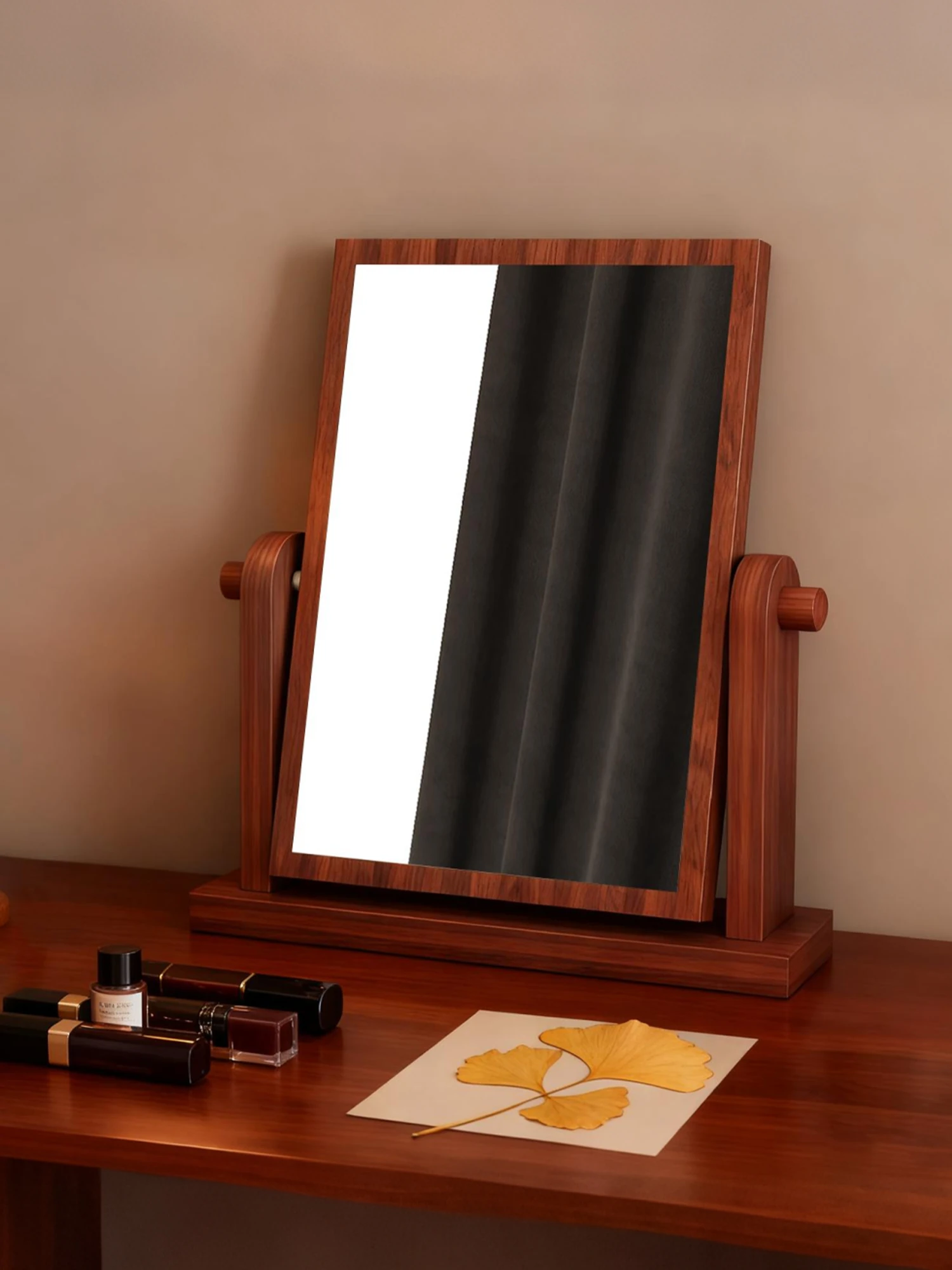 無垢材質の回転式メイクミラー!デスクトップ用の大きな松の化粧鏡。寝室や寮、家庭での使用に最適!美しさを引き立てるスタイリッシュなデザインで、毎日のメイクアップをもっと楽しく!