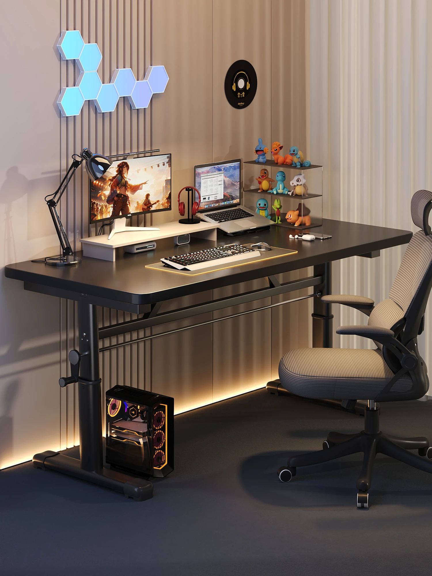 移動可能な昇降式ゲーミングデスク - 寝室や家庭用に最適なシンプルな書斎デスク。学生の学習やオフィス作業にもぴったり!快適な作業環境を手に入れよう!