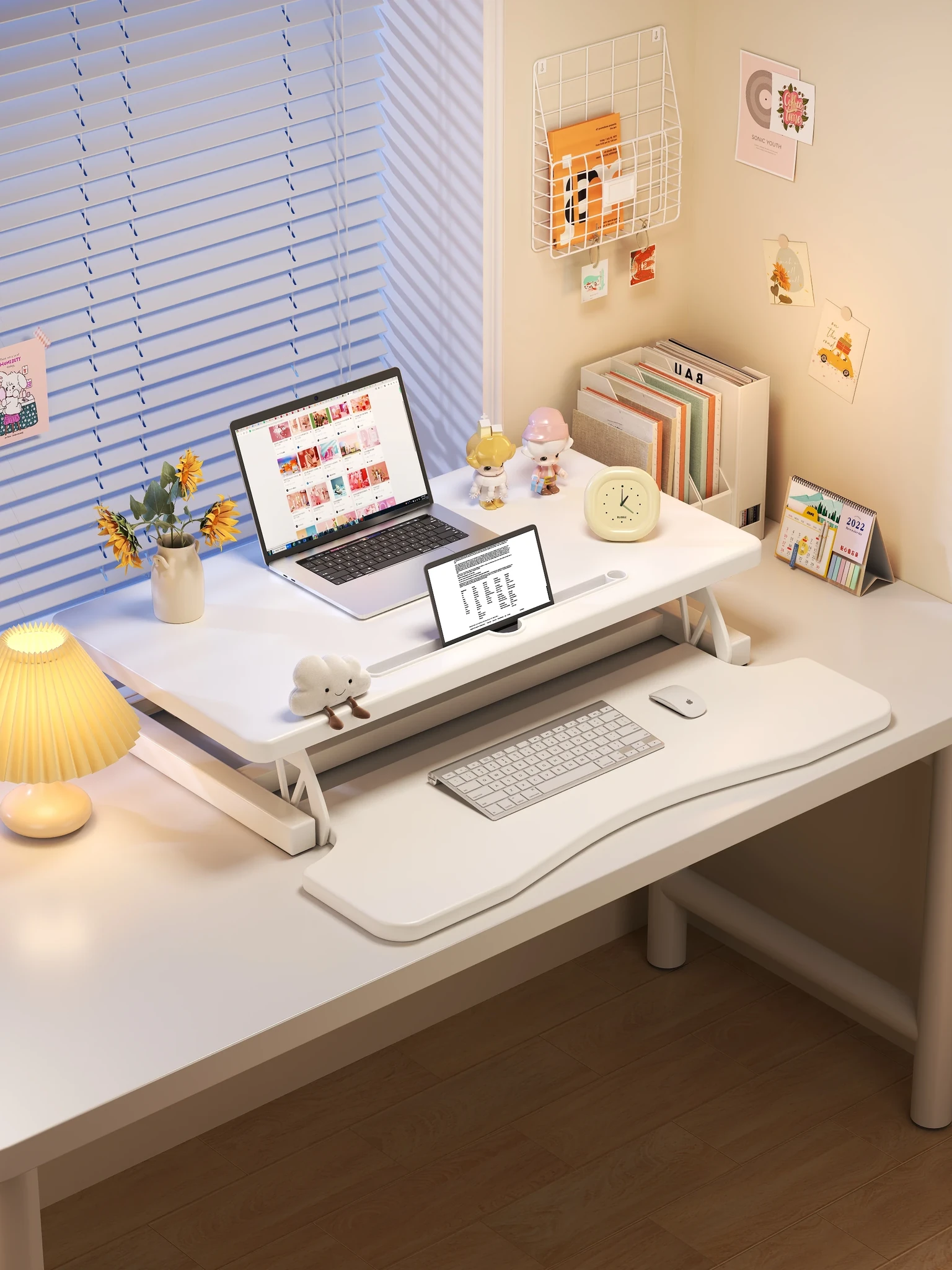 昇降式スタンディングデスク|デスクトップPC&ノートパソコン対応|快適なオフィス環境を実現!デスク上をスッキリさせるコンパクトなテーブルで作業効率アップ!