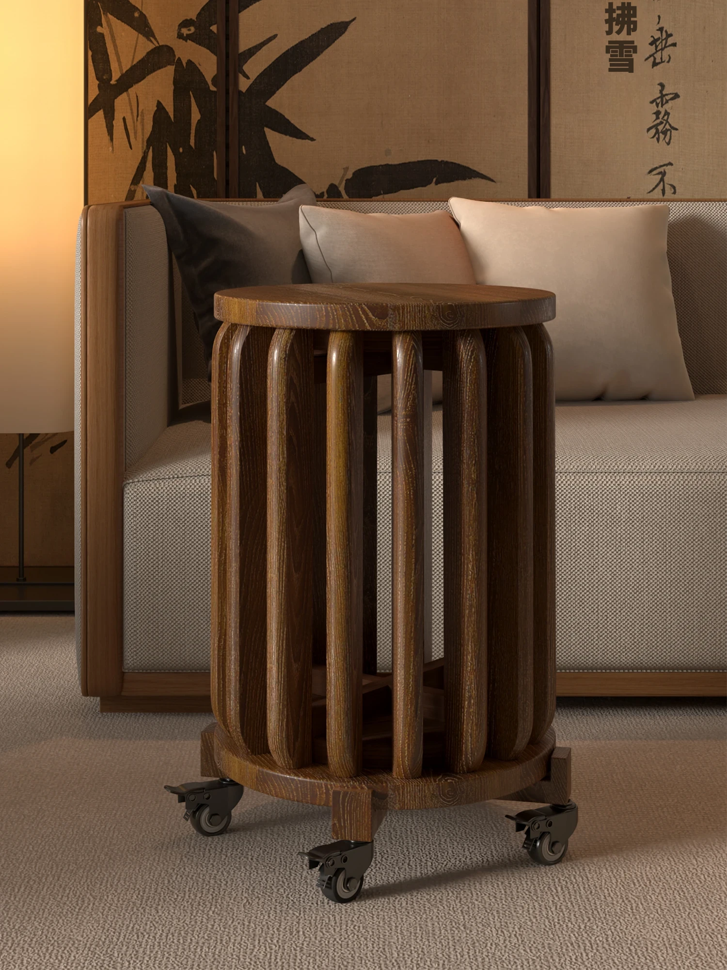 重ねられる実木製のソンスタイル美学ラウンドスツール - 家庭用、リビングやダイニングに最適な頑丈なサブスツール。スタイリッシュでスペースを節約!
