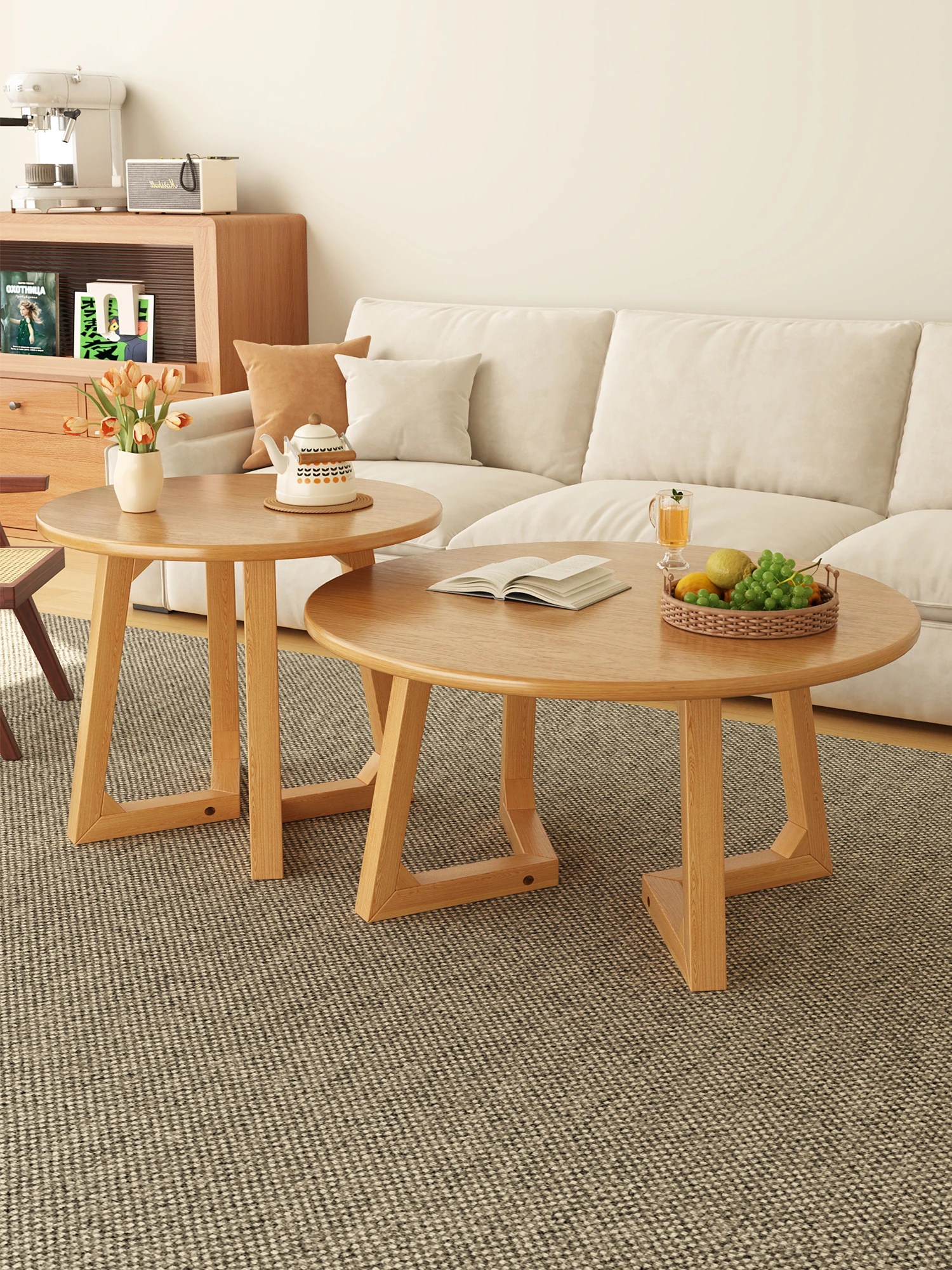 2025年新作!高級感あふれる円形クリーム風テーブル - リビングや小さなバルコニーに最適な実木脚の茶卓で、居心地の良い空間を演出します。