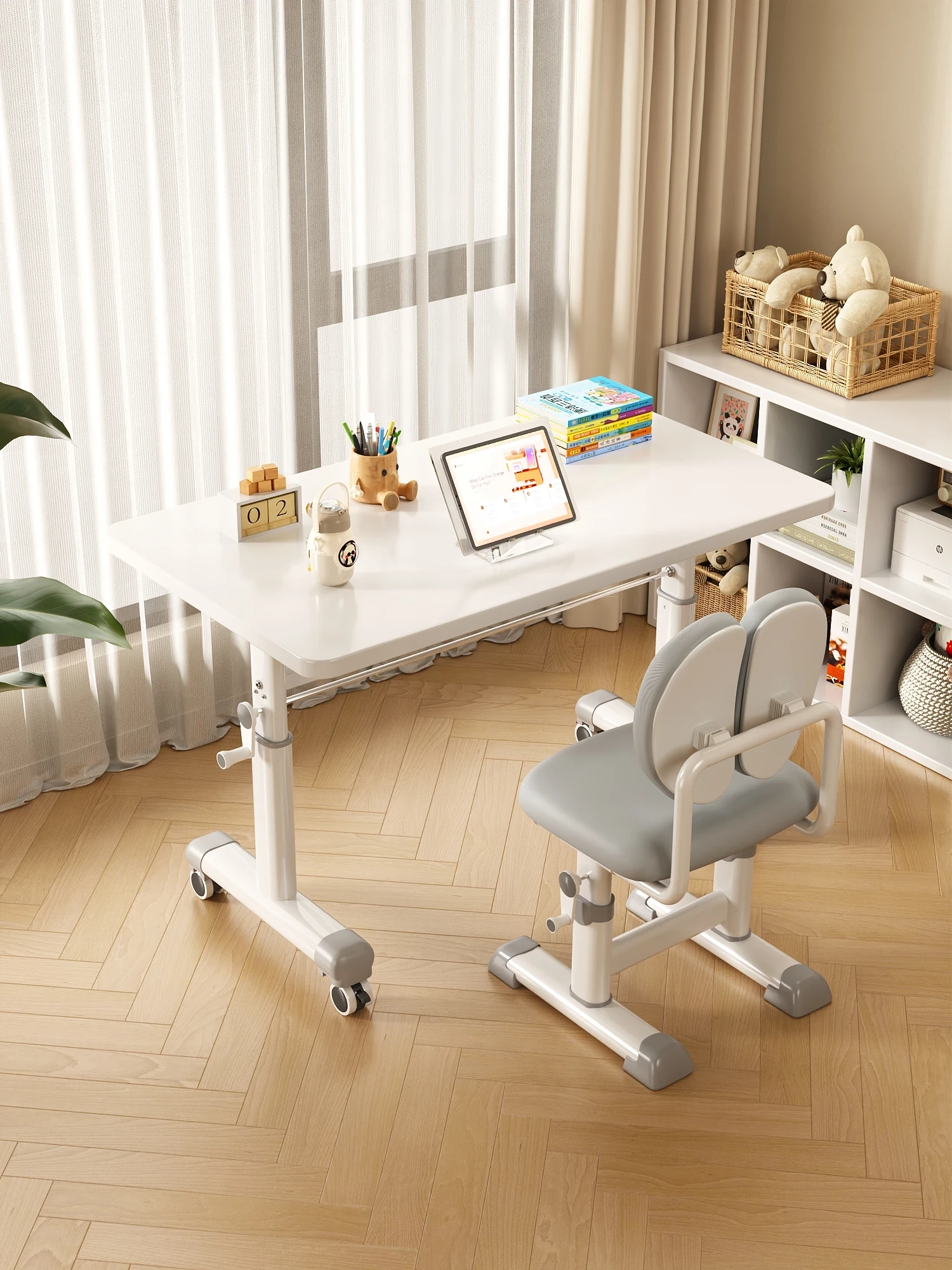 子供用学習デスクセット - 昇降可能で移動も簡単!お家で快適に勉強できる、スタイリッシュなデザインのデスクと椅子。小学生にぴったりの書きやすい机で、成長に合わせて調整可能!