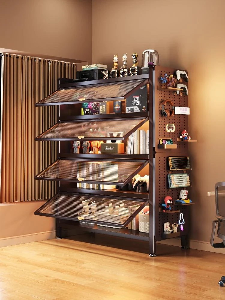 防塵扉付きスチール製ステンレス書棚 - 寝室にぴったりの壁掛け収納キャビネット、スタイリッシュなデザインでお部屋をスッキリ整理!フロアスタンドで便利な物置きとしても活用可能。