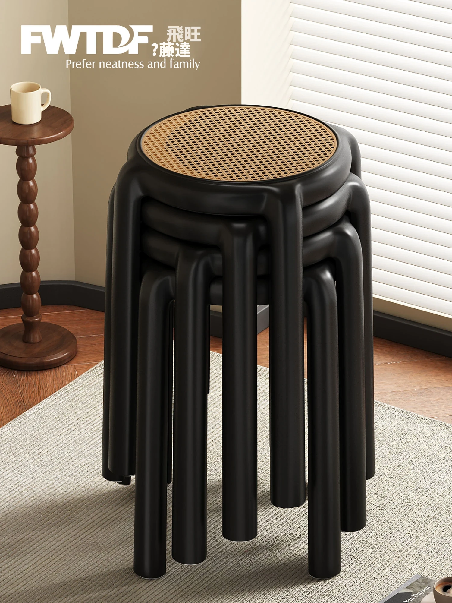 厚手プラスチック製の家庭用スタッキングラウンドスツール、ソフトパッキング付きで高い耐久性!軽量で便利なリザーブスツール、食卓やリビングに最適なアイテムです。