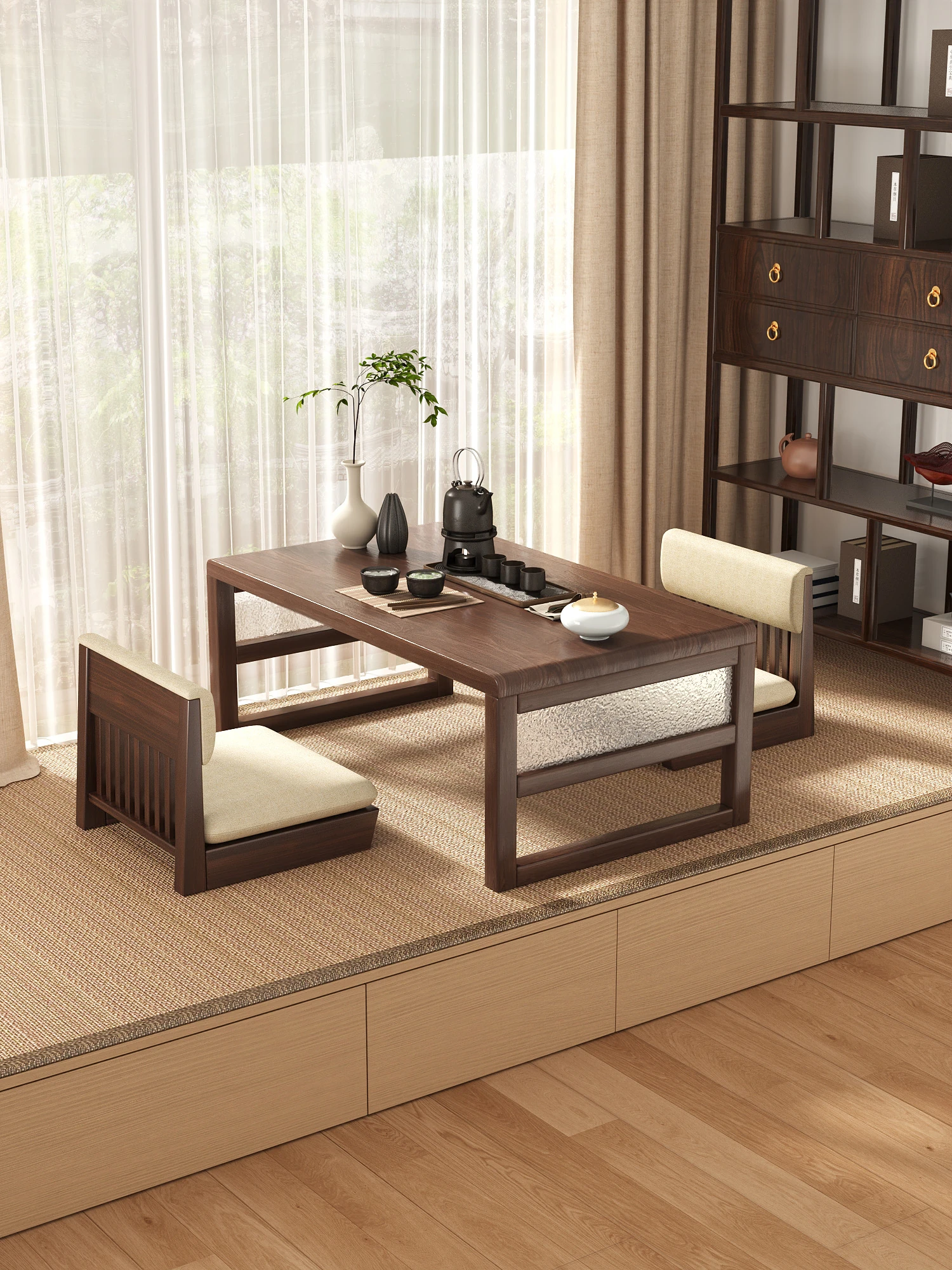 Japanese-style Folding Tea Table for Bay Windows - Compact Tatami Desk, Perfect for Sitting on the Floor, Ideal for Home Use, Versatile Low Table for Cozy Spaces