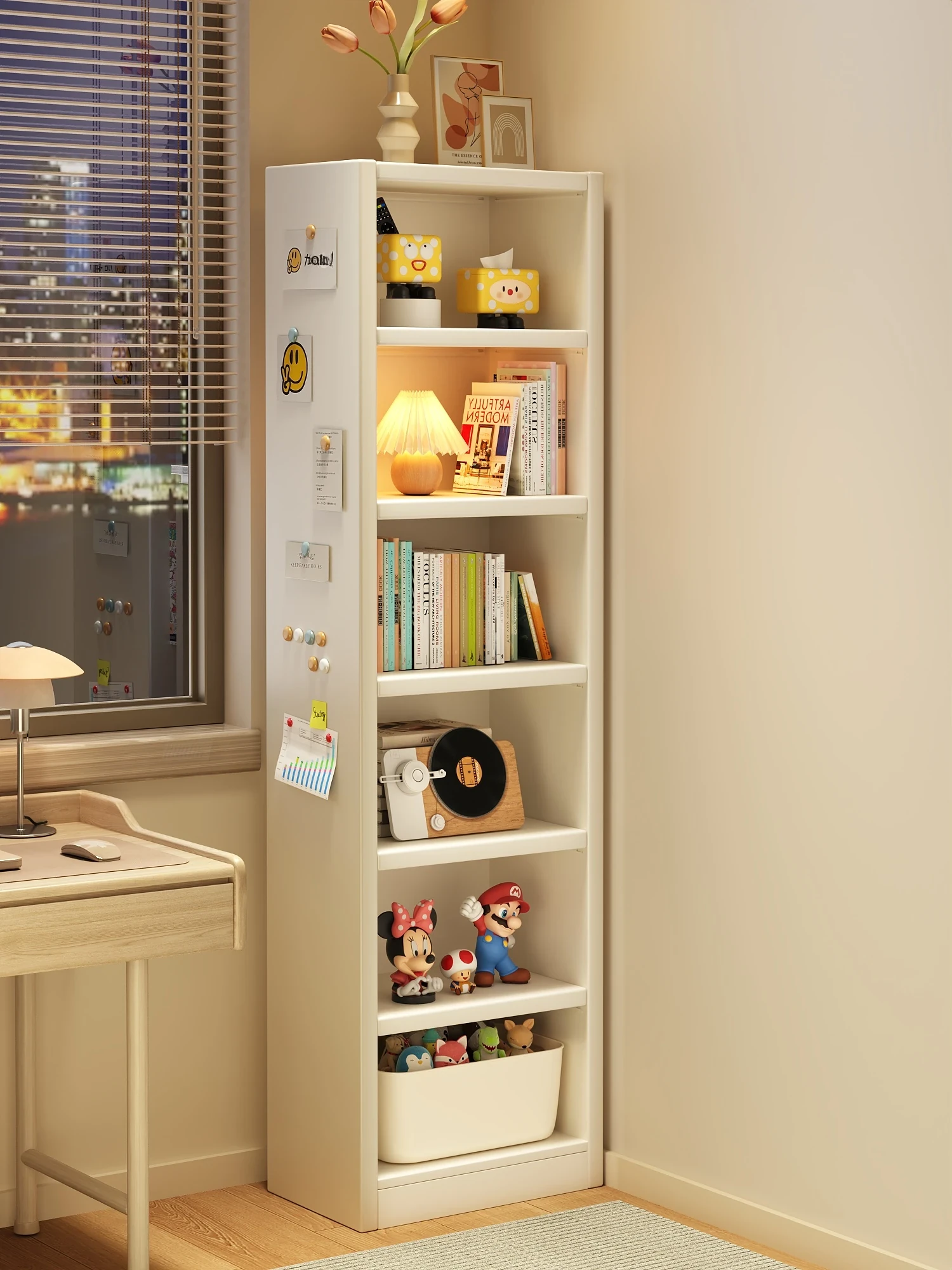Narrow Steel Bookshelf for Kids - Stylish Floor Storage Rack, Wall-Mounted Organizer, Multi-Layer Simple Storage Cabinet for Home and Living Room