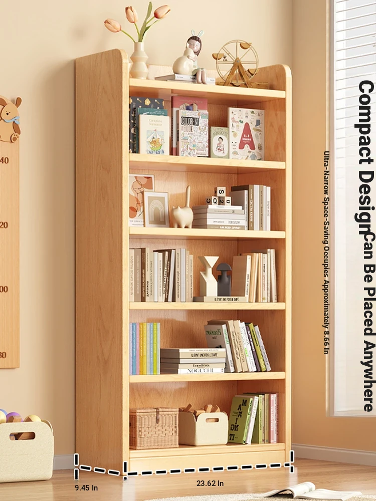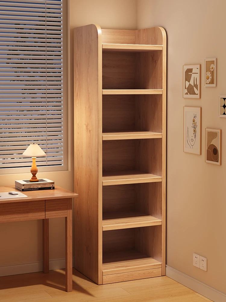 Solid Wood Bookshelf - Stylish Corner Floor Storage Rack for Living Room, Space-Saving Wall-Mounted Narrow Bookcase, Minimalist Bedroom Organizer and Storage Cabinet
