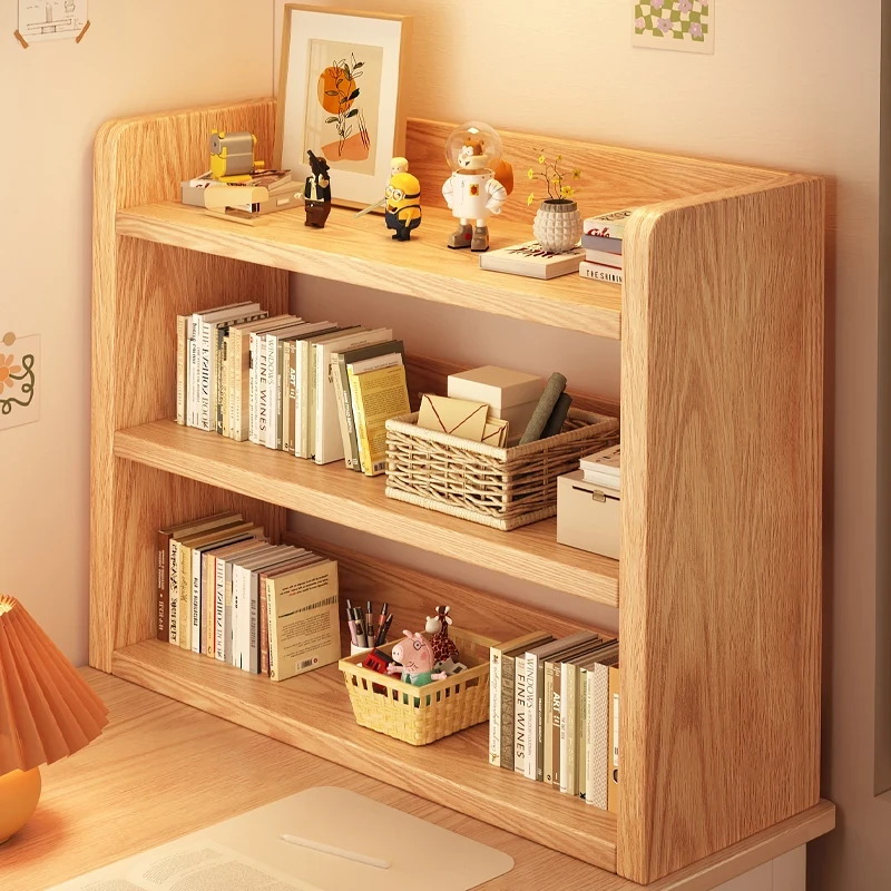 Solid Wood Bookshelf - Multi-Tier Desktop Storage Rack for Students and Home Use, Simple Corner Organizer, Slim Wall Unit for Efficient Space Saving