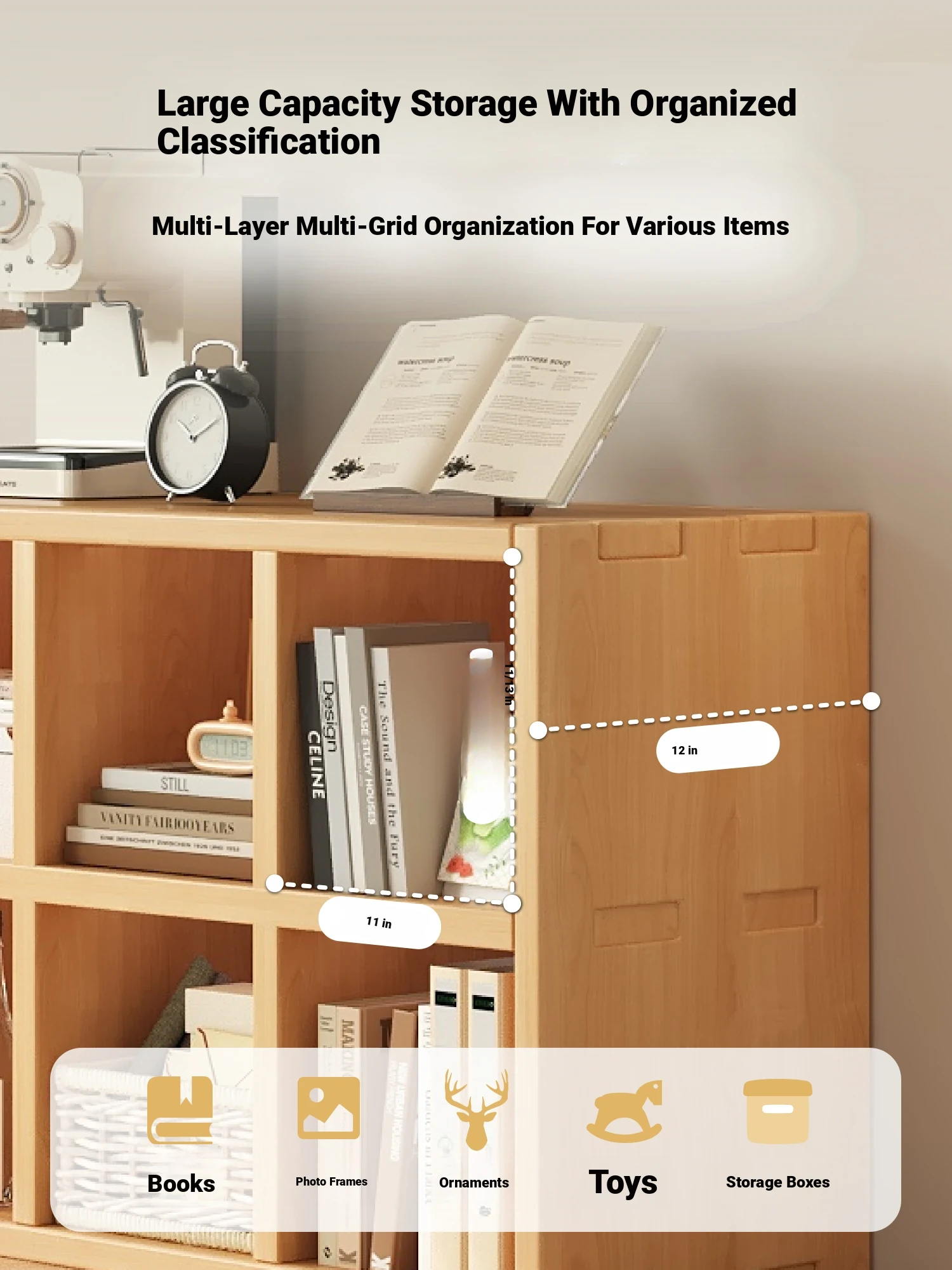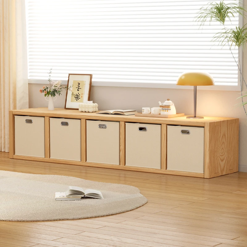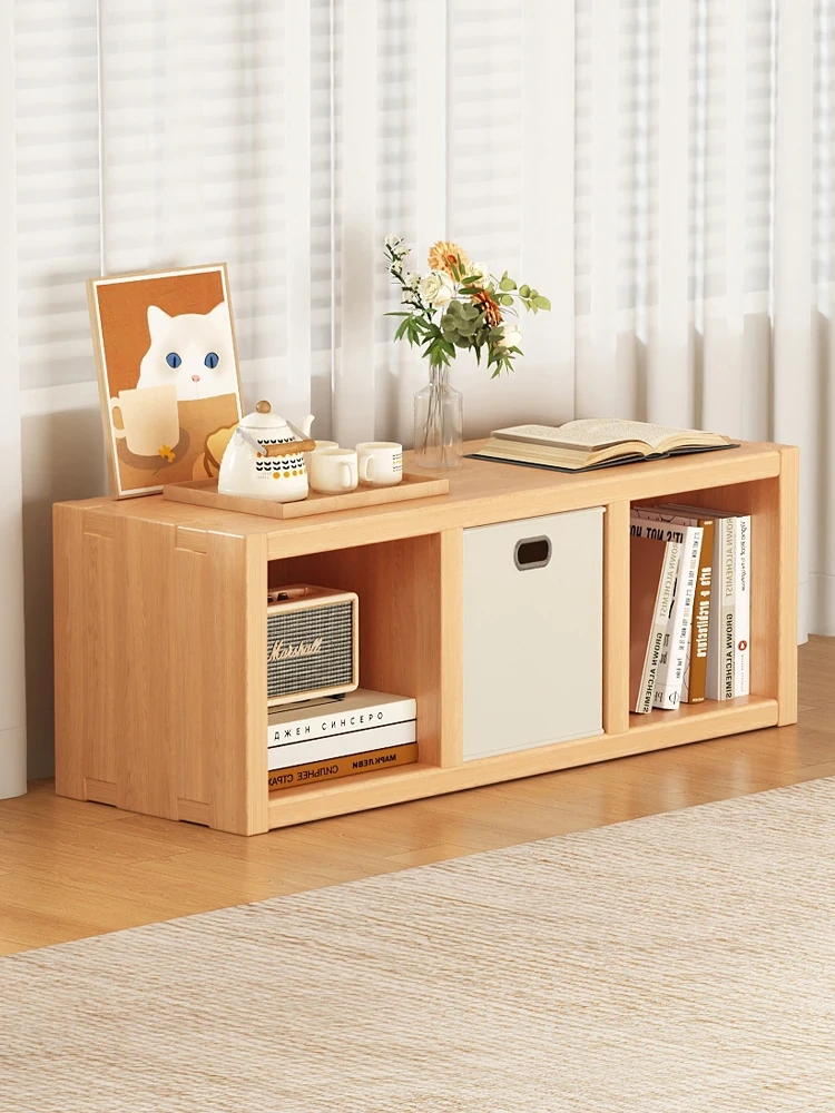 Solid Wood Single-Layer Gridded Cabinet - Versatile Floor Shelf for Bay Windows and Balconies, Perfect for Organizing Books and Toys, Customizable Storage Solution for Any Space.