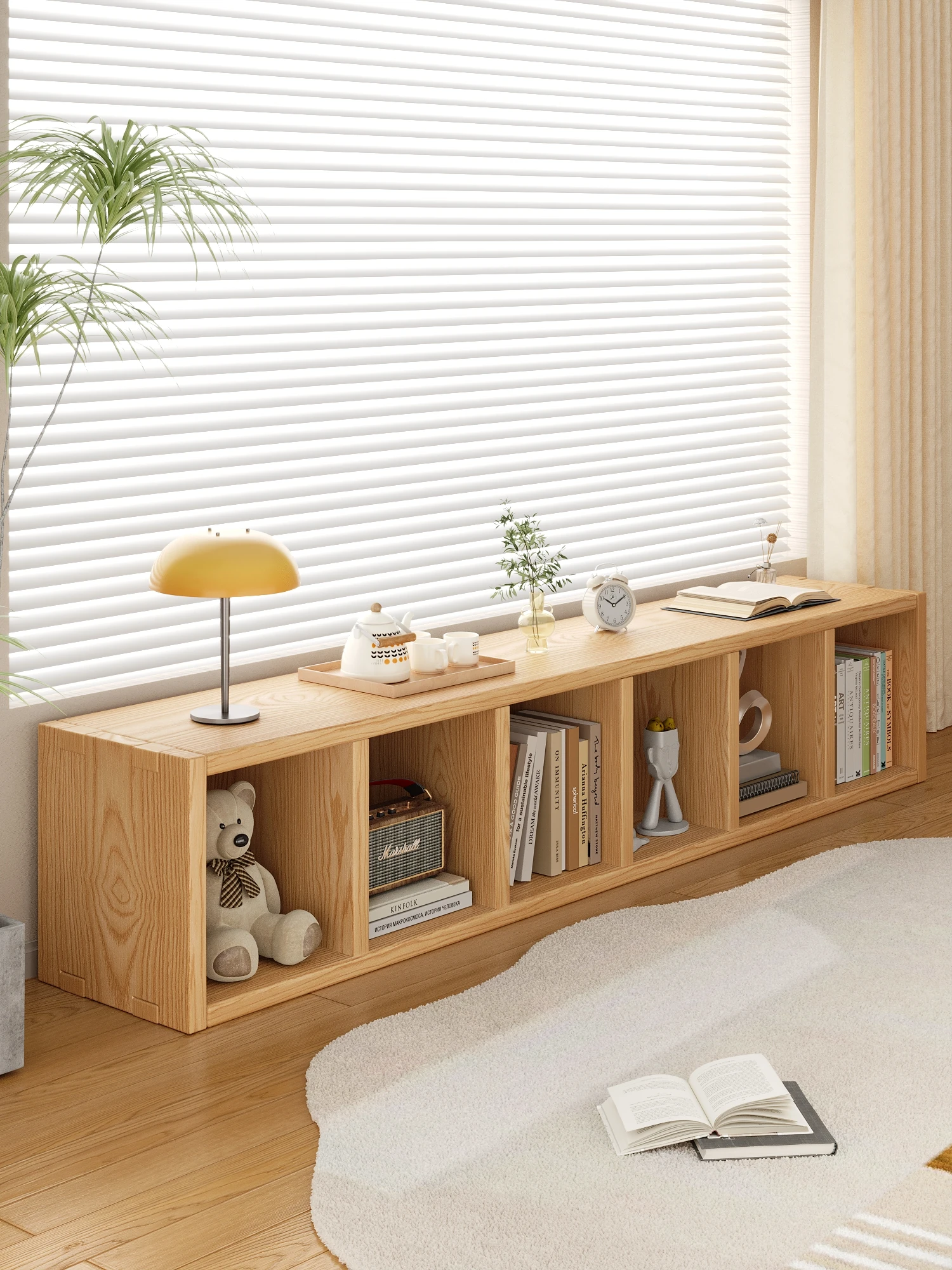Solid Wood Bookshelf Window Storage Rack - Single Layer Floor Cabinet for Bedroom Window Sill, Versatile Cubby Organizer, Easy-to-Use Bookcase for Kids