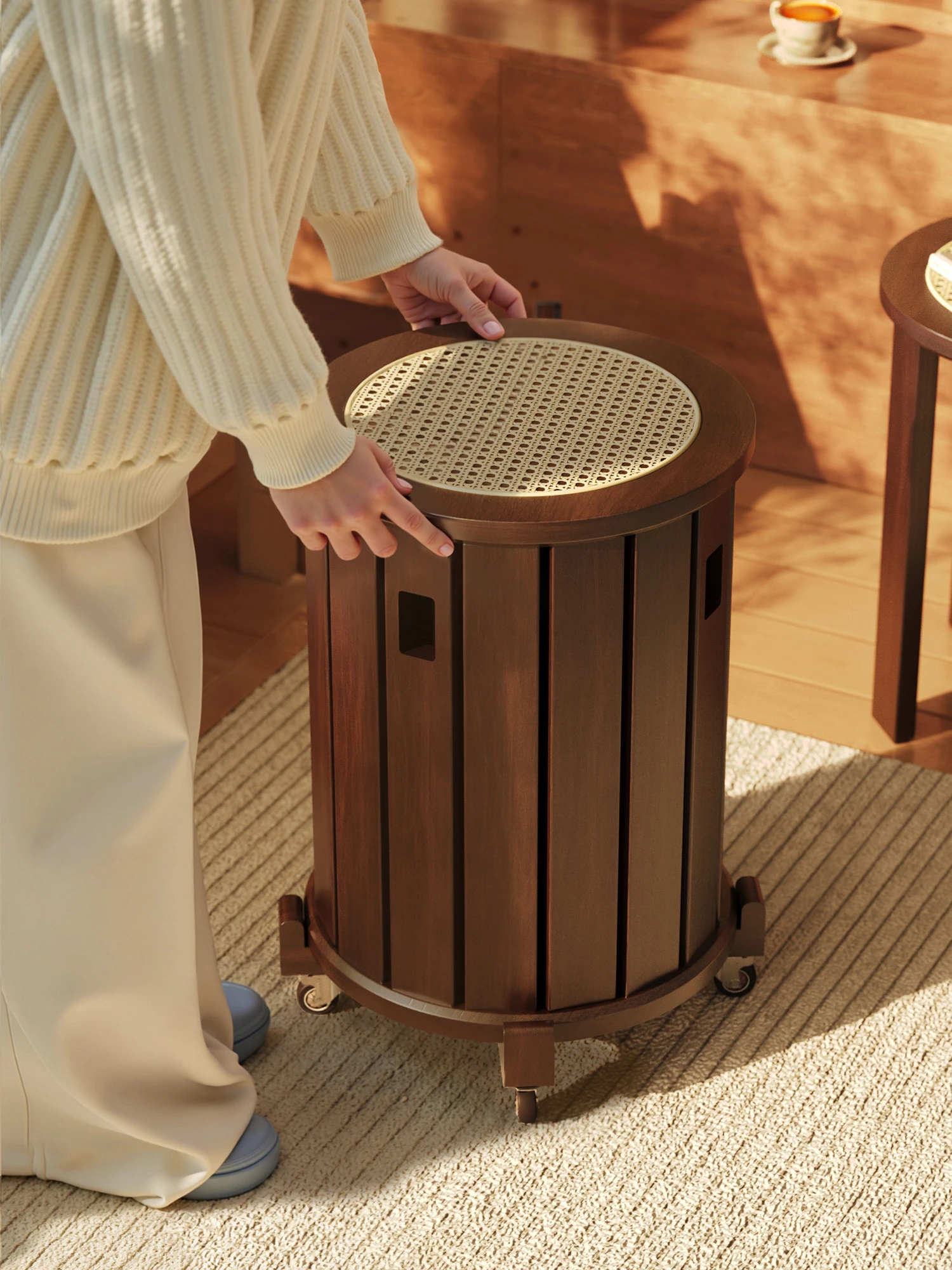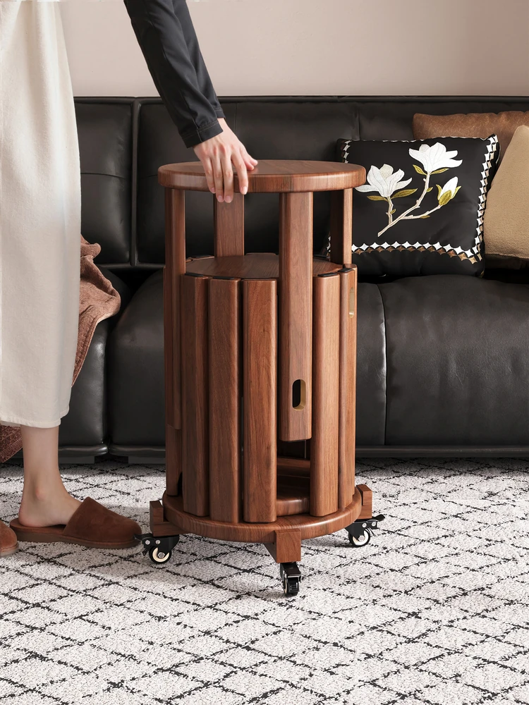 Solid Wood Folding Stool - Versatile Rotating Stools for Home Use, New Chinese Style, Space-Saving and Portable Coffee Table Ottomans, Round Design for Living Room Storage