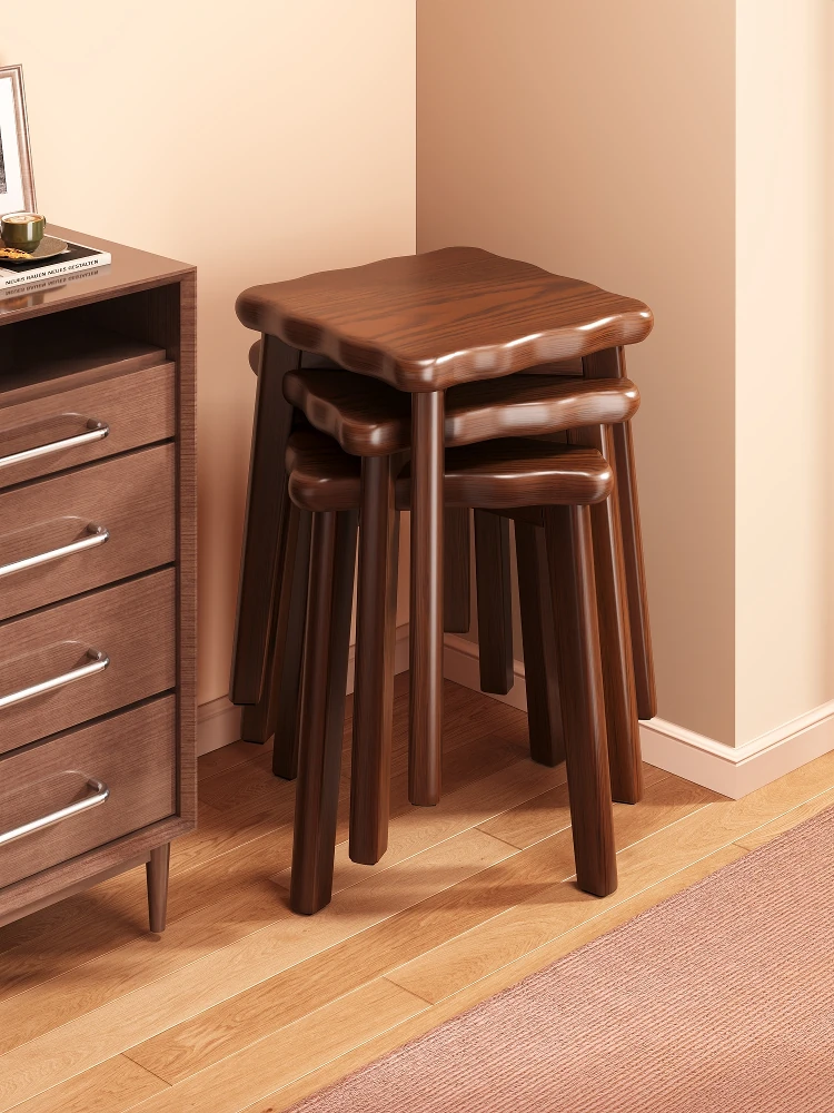 Durable Solid Wood Stool - Stackable and Versatile for Home Use, Perfect as Extra Seating, Dining Table Companion, or Makeup Vanity Stool - New Chinese Style Square Design