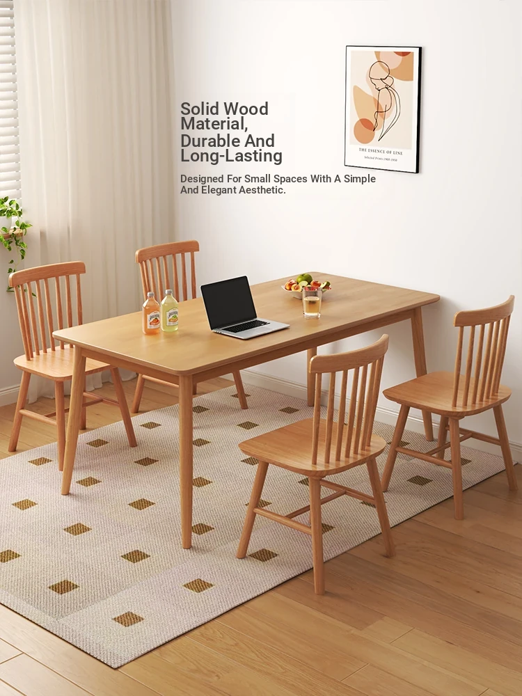 Modern Minimalist Solid Wood Dining Table Set for Small Spaces - Rectangular Natural Wood Table with Chairs for Home Dining