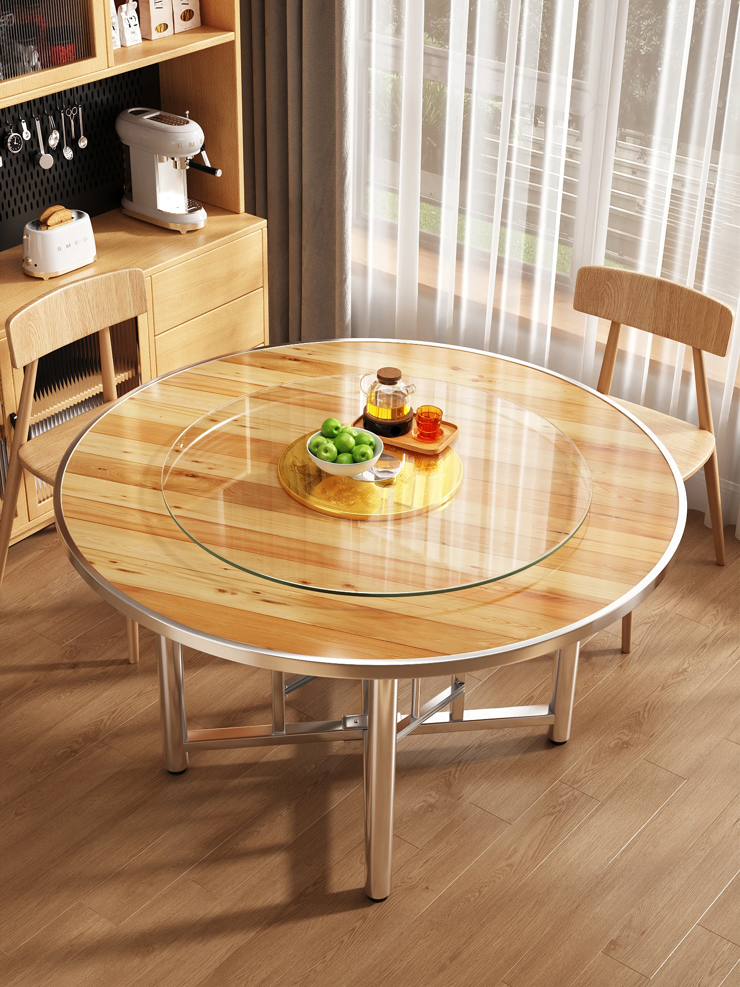 Solid Wood Large Round Dining Table with Rotating Tray - Foldable Design for Home Use, Perfect for 10-15 People - Economical Dining Table for Rural Areas