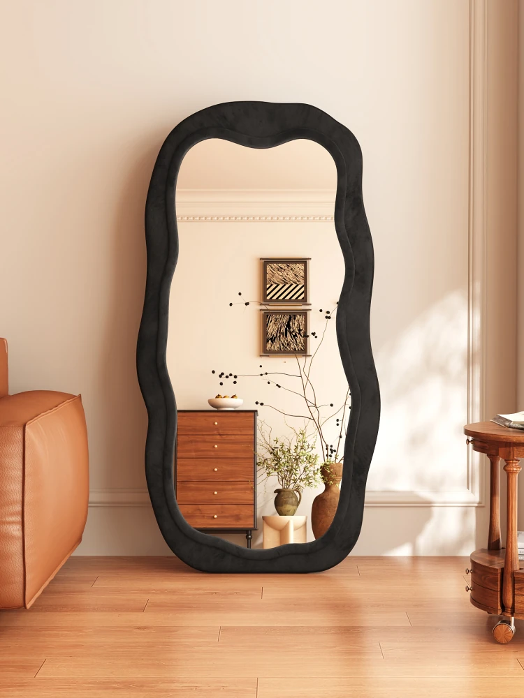 おしゃれな波形全身鏡 大型試着鏡 家庭用 女子向け 寝室にぴったり!高級感溢れるデザインで、毎日のコーディネートが楽しくなる!