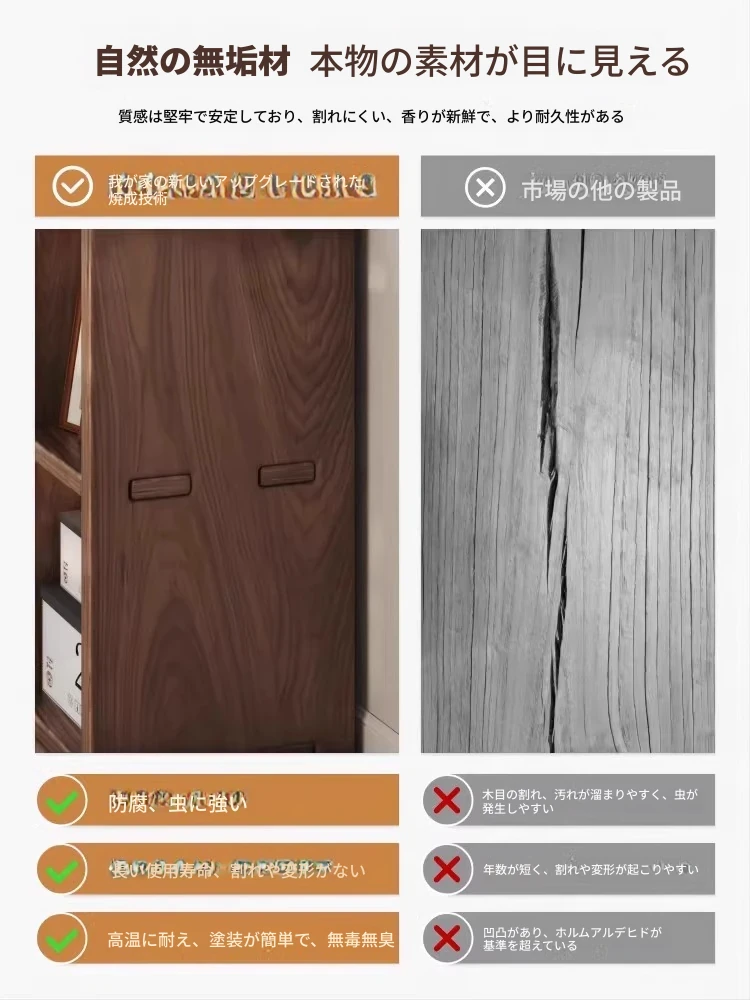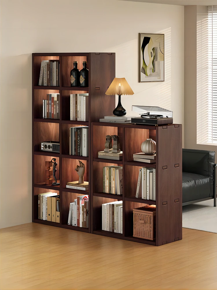 全実木製ブックシェルフ&収納ラック|自由に組み合わせ可能なサイドキャビネット|リビングにぴったりの多機能グリッドキャビネットで、おしゃれに収納!
